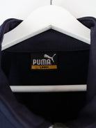 Blaue Trainingsjacke aus dem Hause Puma aus den 90'ern in Größe L. Sie ist aus Synthetik angefertigt und in sehr gutem Zustand im Angebot.