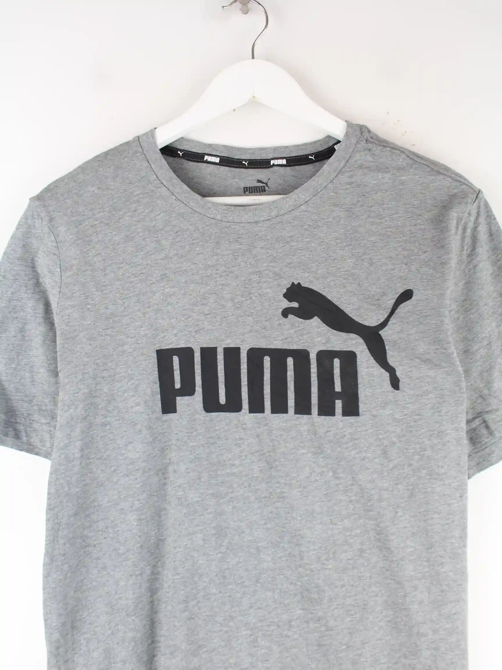 T-Shirt aus dem Hause Puma in Größe M. Es ist aus Baumwolle hergestellt und in Grau lieferbar. Mit seltenem Logo Print.