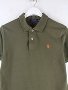 Grünes Poloshirt der Marke Ralph Lauren mit orangenem Logo. Es ist in Größe XL (18-20) und entspricht etwas einer Größe M.