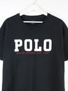 Schwarzes T-Shirt aus dem Hause Ralph Lauren in Größe L. Es ist aus Baumwolle gemacht und in sehr gutem Zustand auf Lager. Mit seltenem Polo Print.
