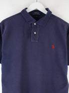 Blaues Poloshirt aus dem Hause Ralph Lauren in Größe L. Es ist aus Baumwolle angefertigt und in sehr gutem Zustand bei uns zu bekommen.