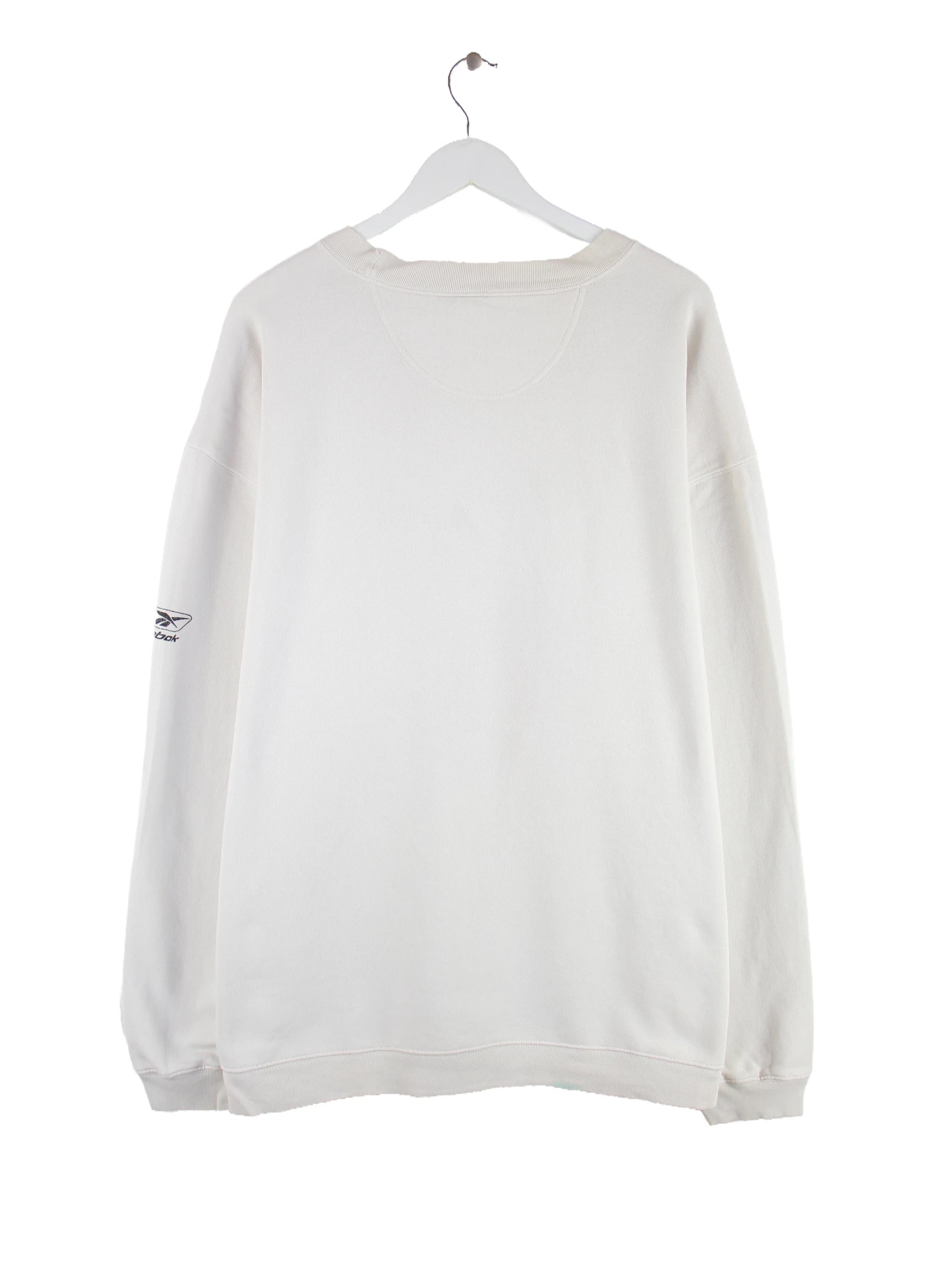 Sweater vom Label Reebok in Größe XL. Er ist aus einer Baumwollmischung gefertigt und in Weiß lieferbar. Mit schickem Cowboys Print.