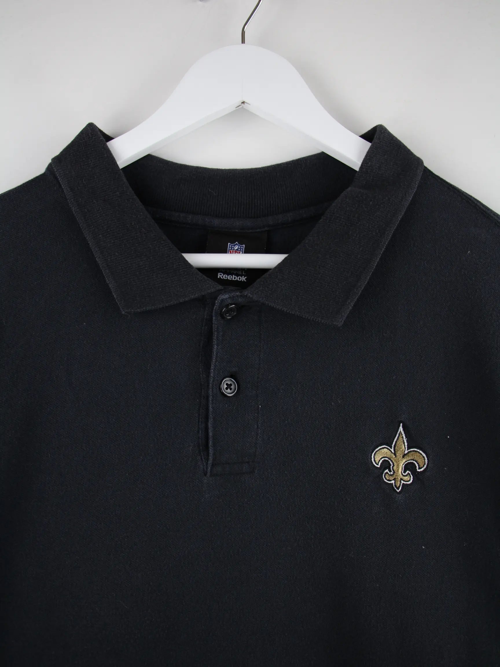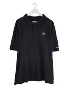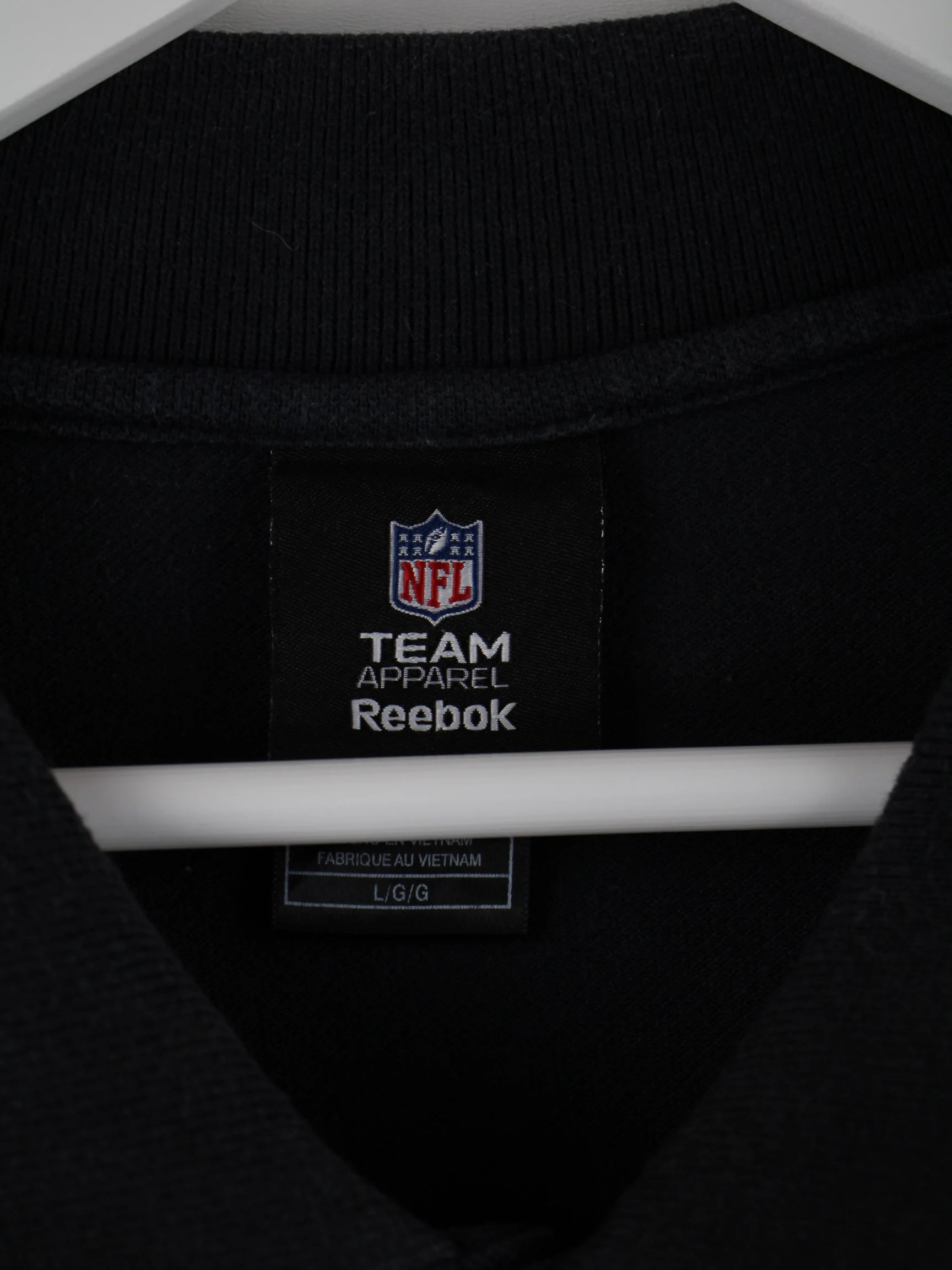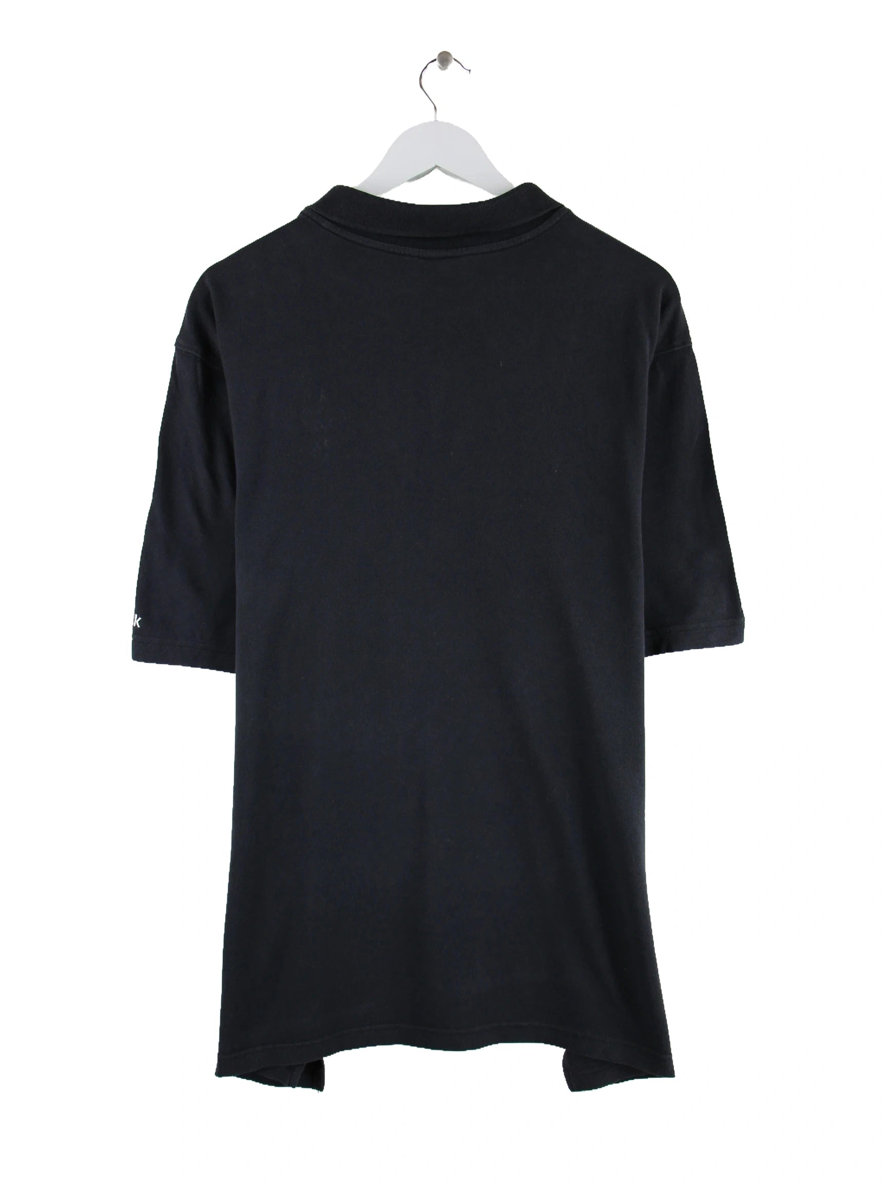 Schwarzes Poloshirt des Labels Reebok in Größe L. Es ist aus Baumwolle produziert und in gutem Zustand lieferbar.