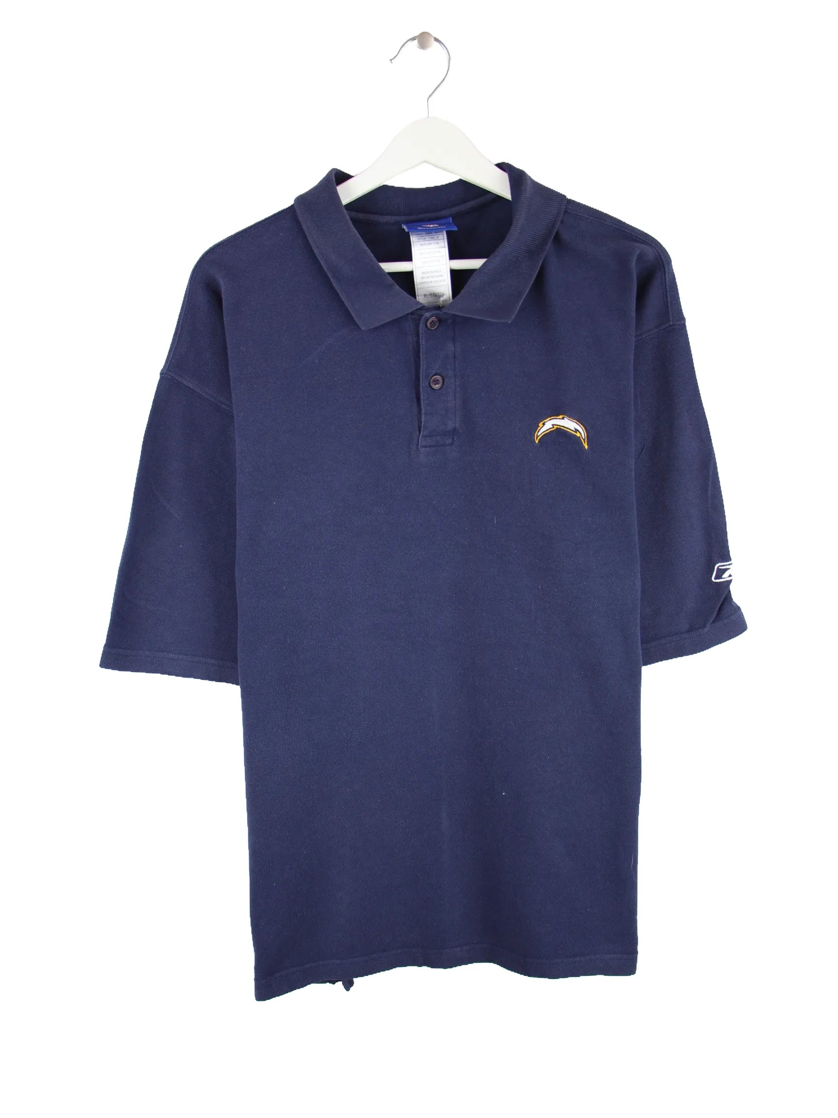 Poloshirt des Labels Reebok in Größe XL. Es ist aus Baumwolle gefertigt und in Blau bei uns zu bekommen.
