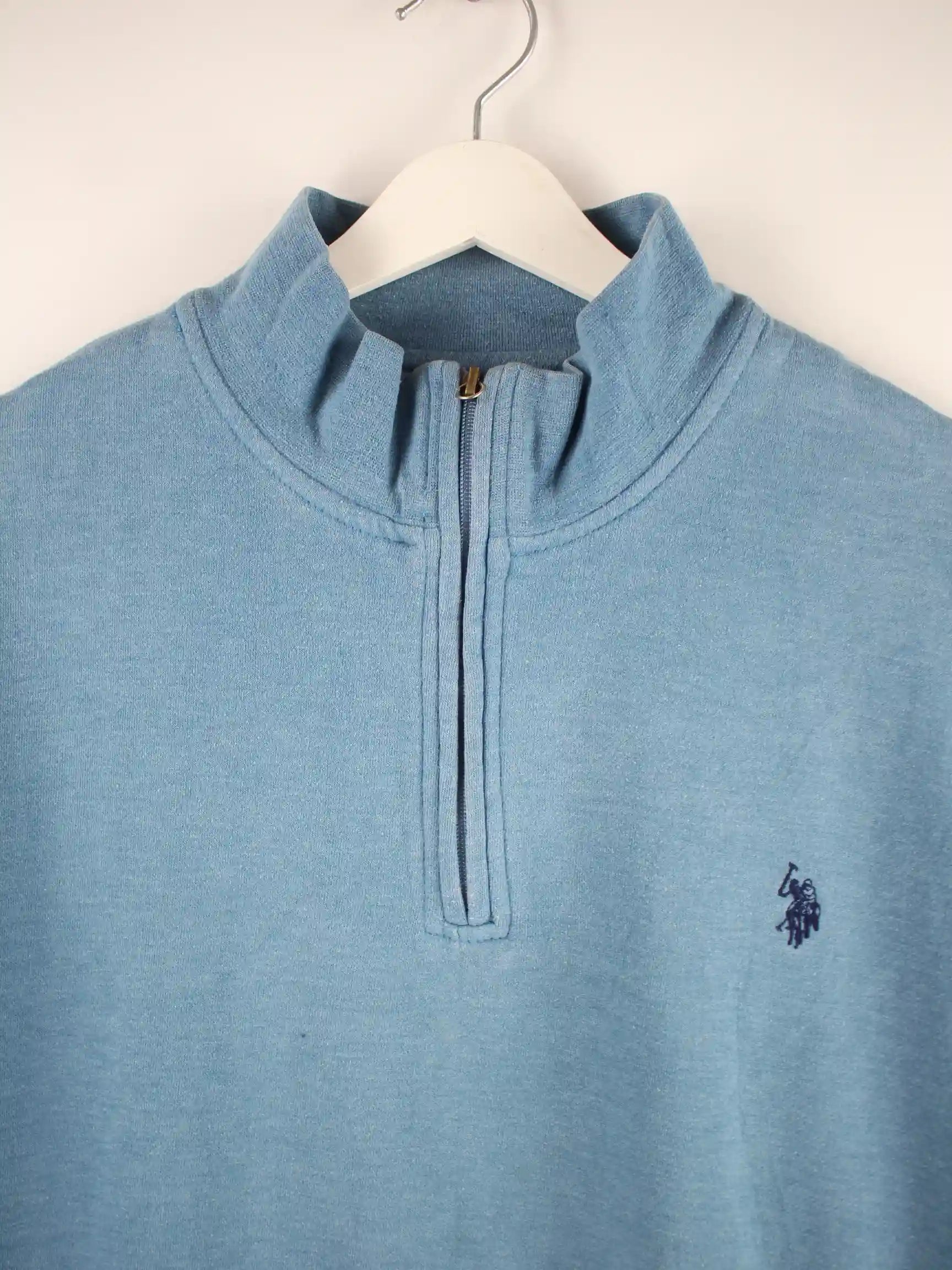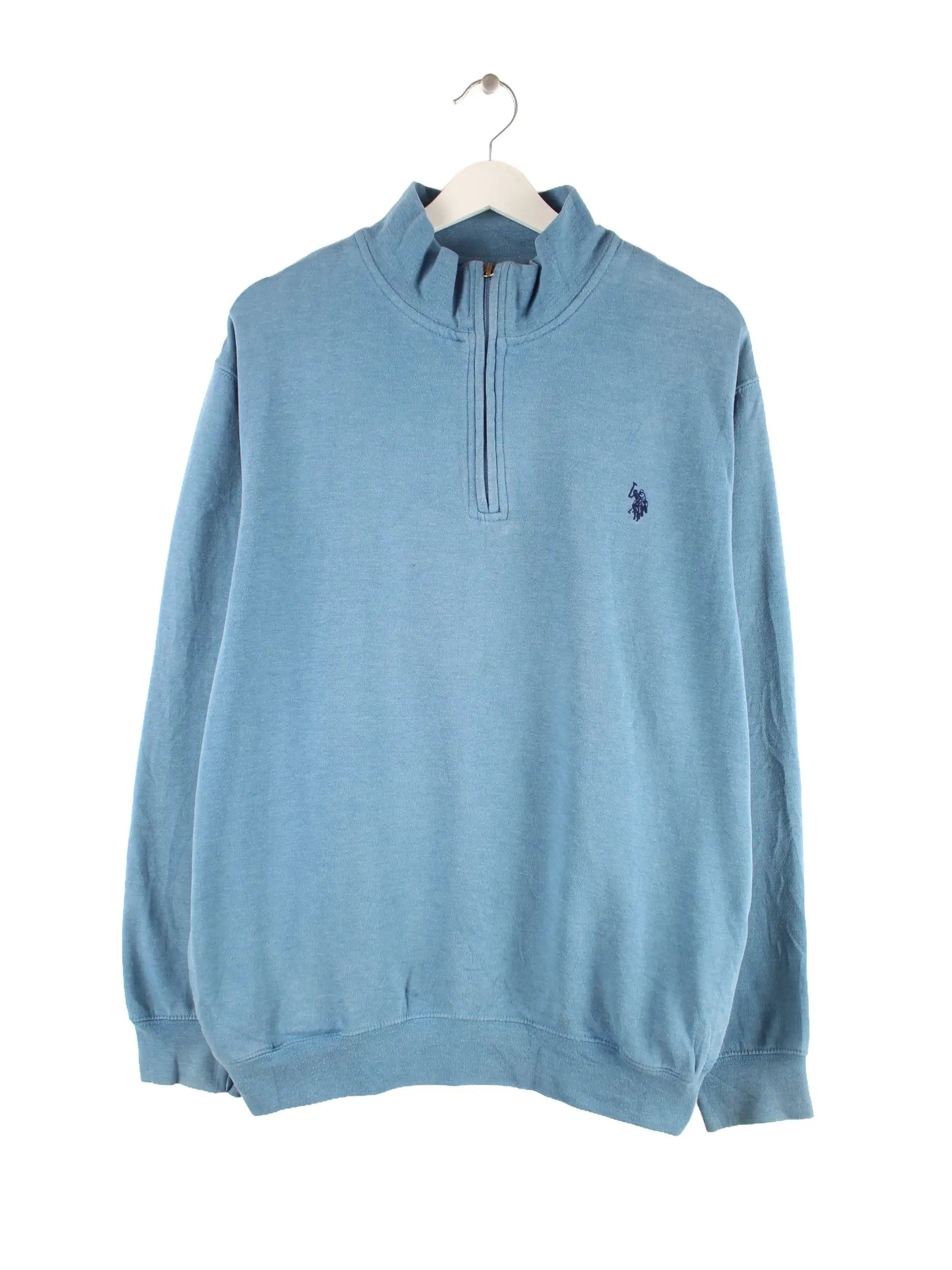 Blauer Sweater mit halbem Reißverschluß der Marke U.S. Polo ASSN. in Größe M. Er ist aus einer Baumwollmischung produziert und in gutem Zustand zu bekommen.