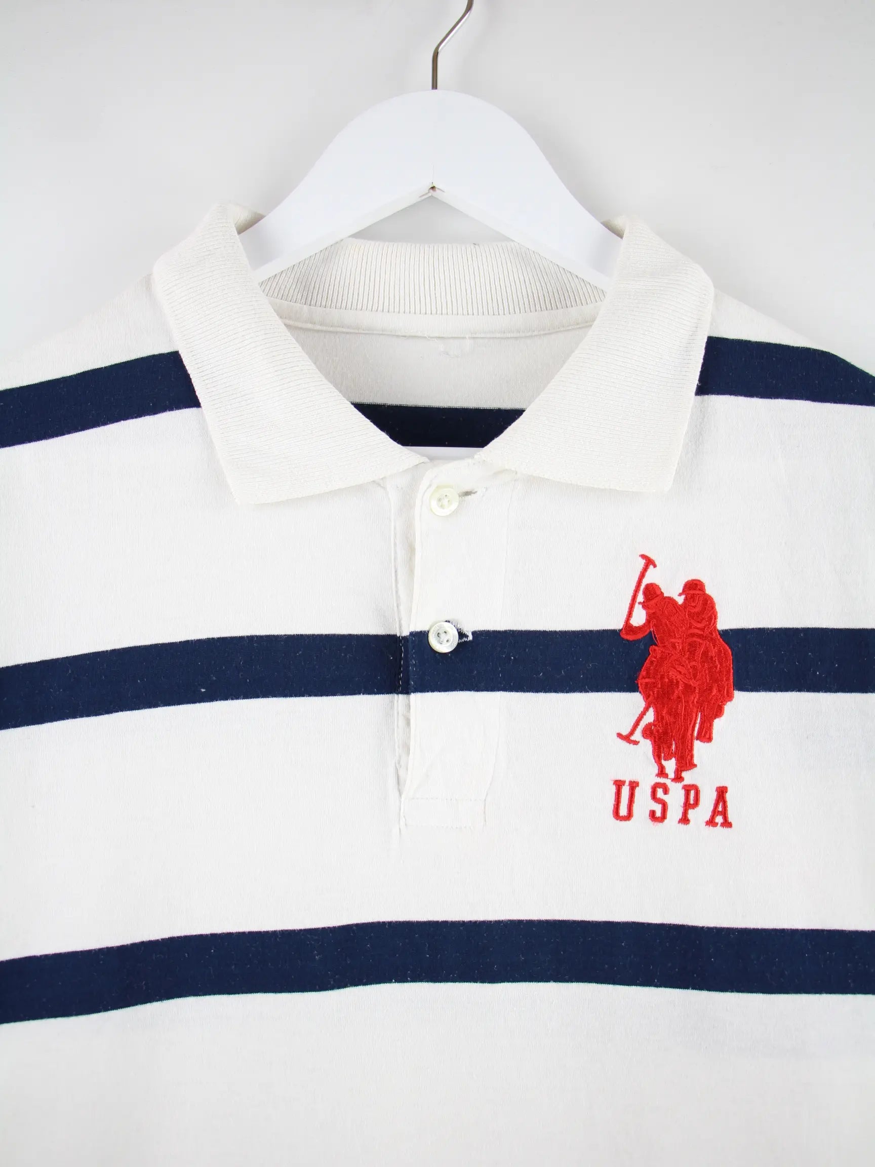 Weißes Poloshirt des Labels U.S. Polo ASSN. in Größe M. Es ist aus Baumwolle angefertigt und in gutem Zustand im Bestand.