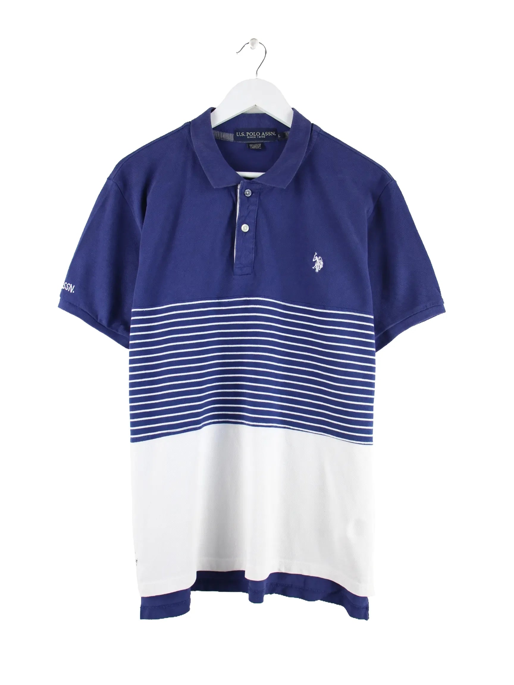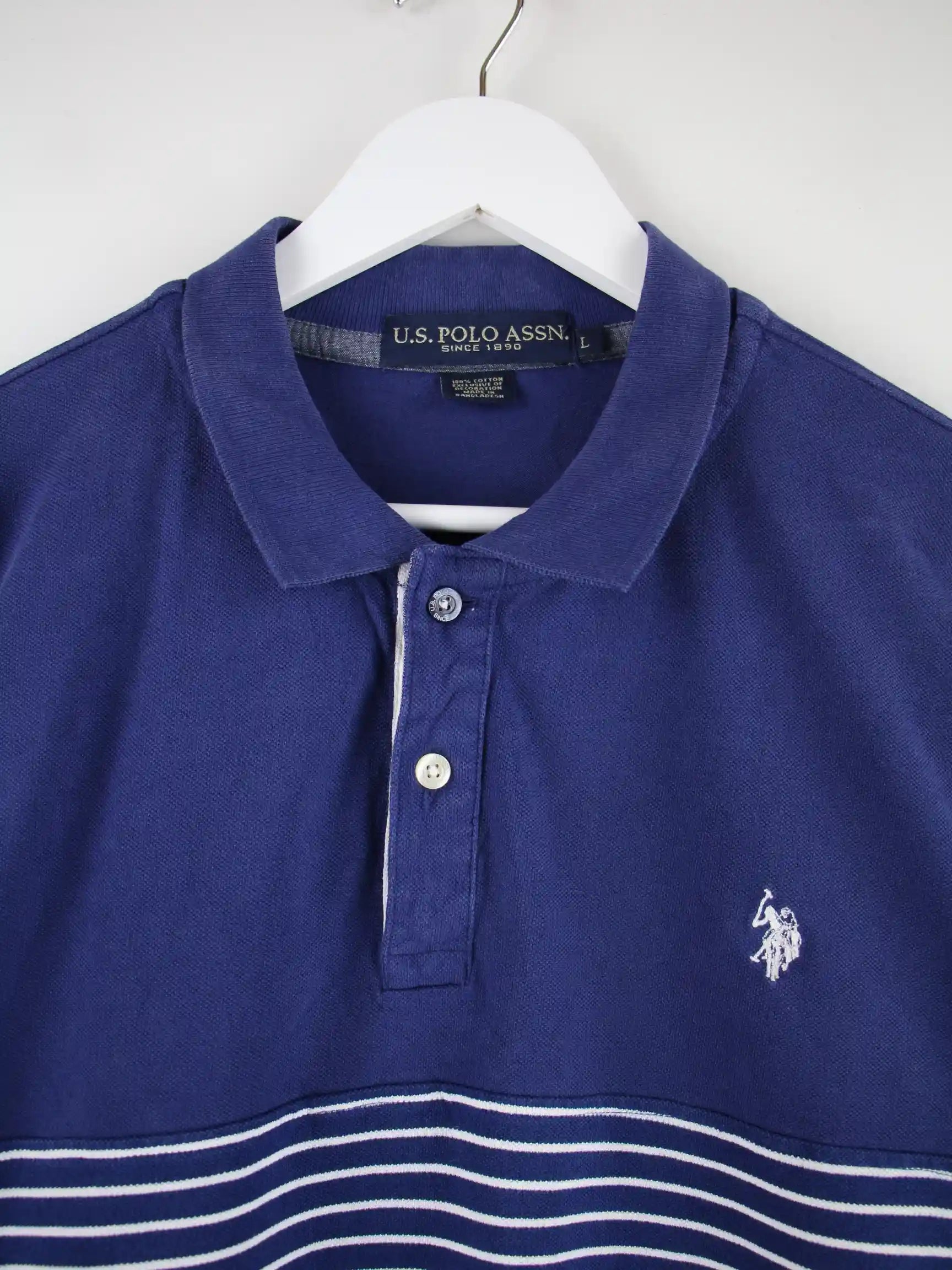 Poloshirt vom Label U.S. Polo ASSN. in Größe L. Es ist aus Baumwolle angefertigt und in Blau vorrätig.