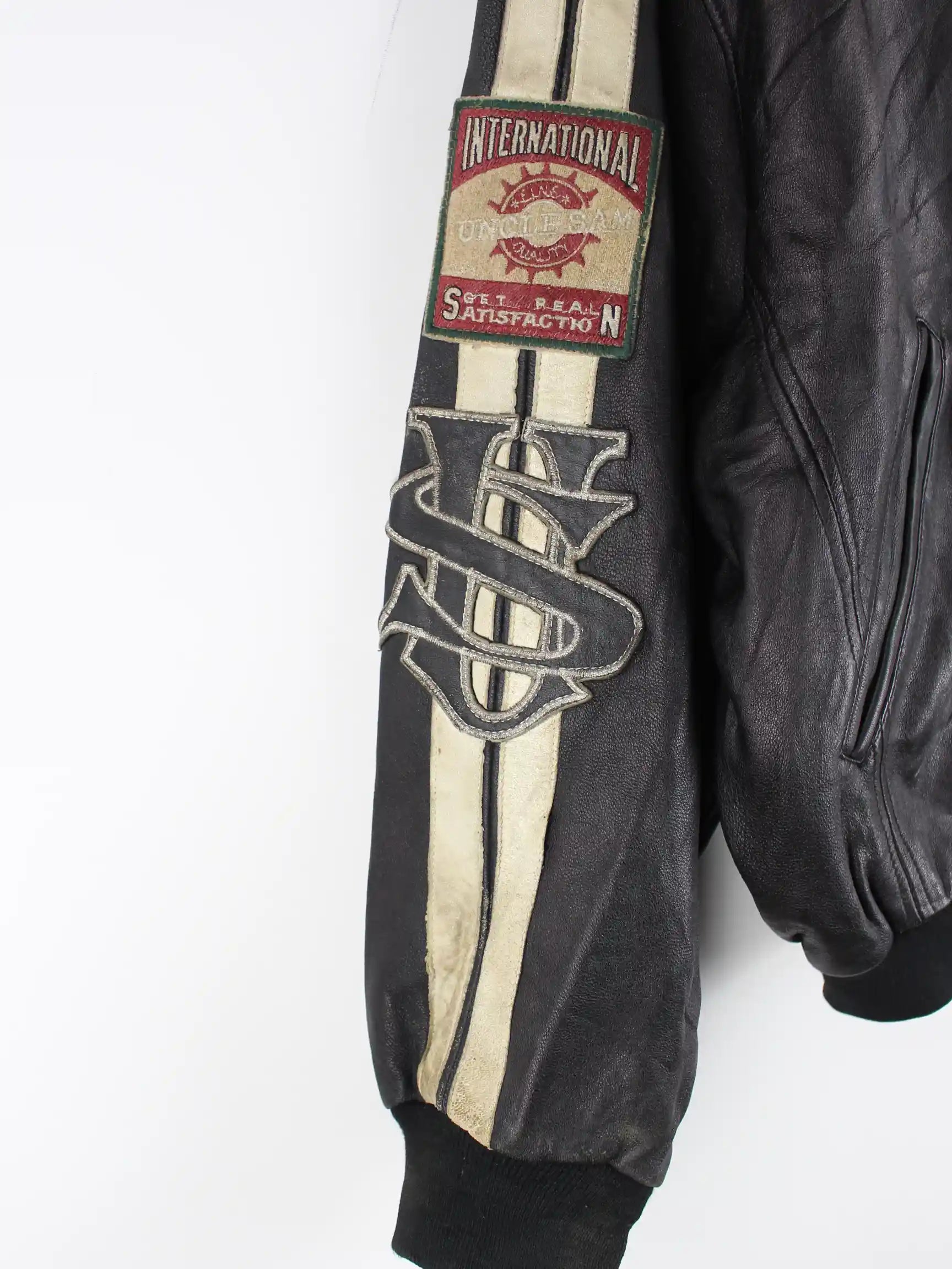 Jacke vom Label Uncle Sam in Größe M aus den 90'ern. Sie ist aus Leder und in Schwarz vorrätig.