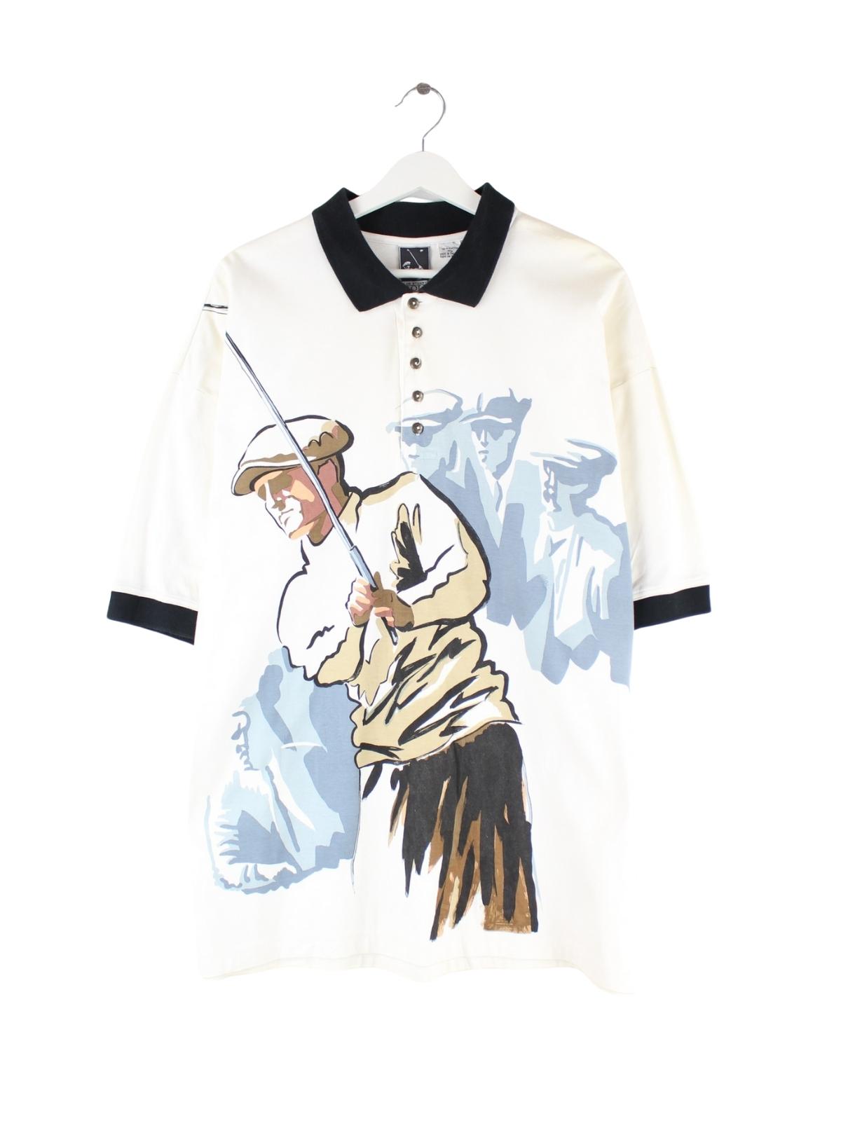 Vintage 00s Alan Stuart Golf Print Polo Weiß XL
