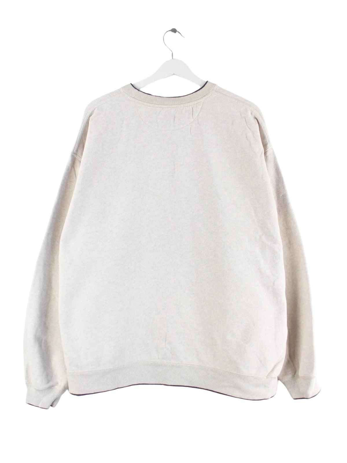 Grauer Vintage Sweater mit gesticktem Logo in Größe XL. Er ist aus einer Baumwollmischung produziert und in sehr gutem Zustand in Stock.