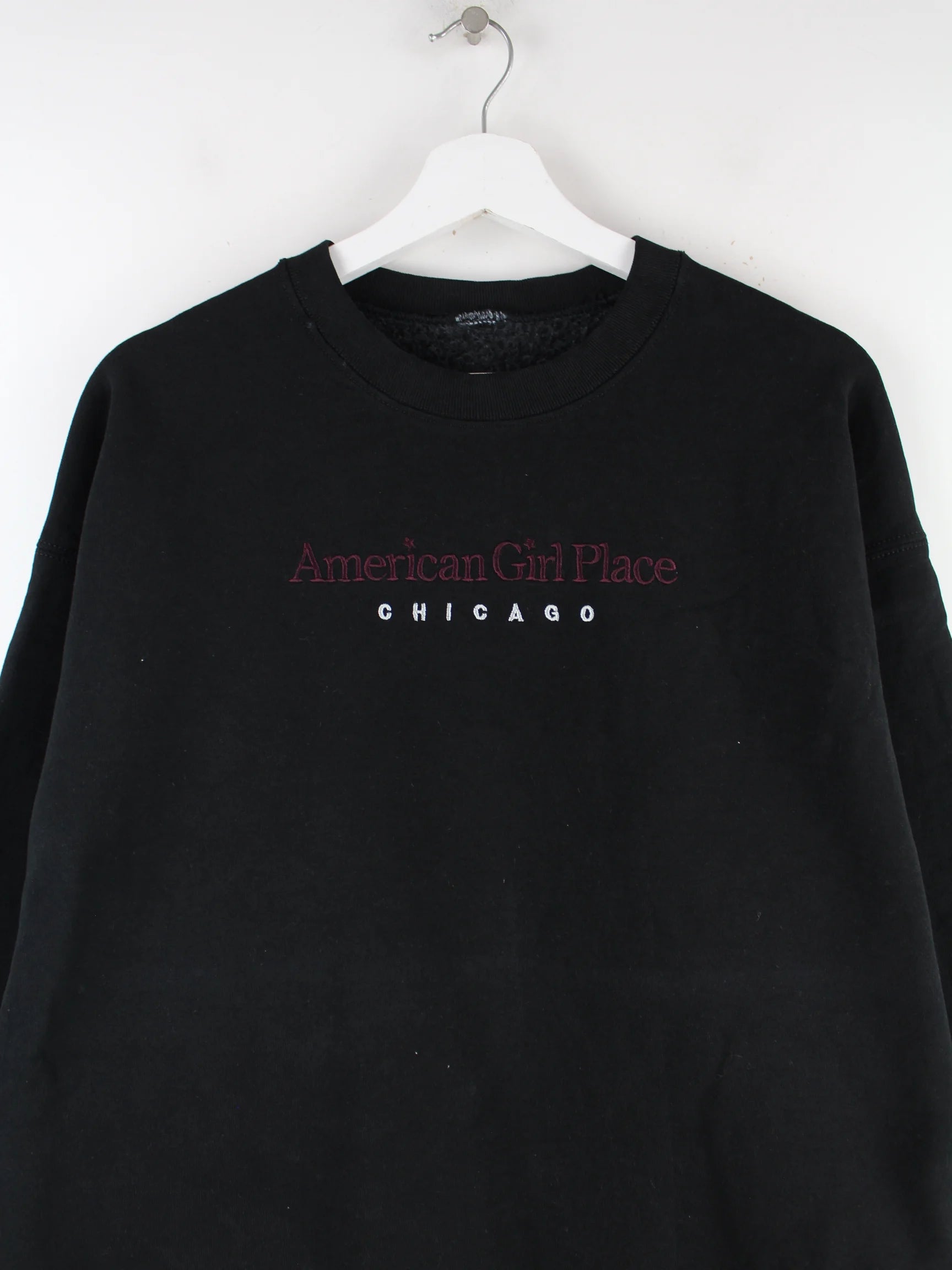 Vintage 00s American Girl Embroidered Sweater Schwarz L
