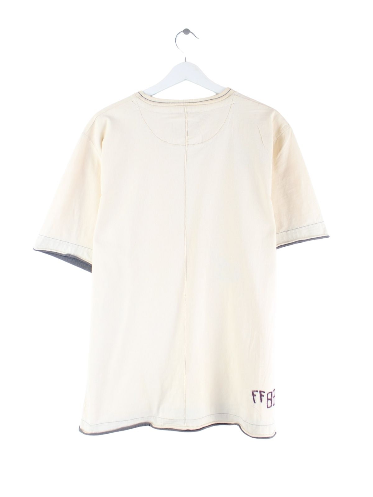 Beigefarbenes Vintage T-Shirt in Größe XL. Es ist aus Baumwolle gemacht und in sehr gutem Zustand in Stock. Mit schickem Band Print.