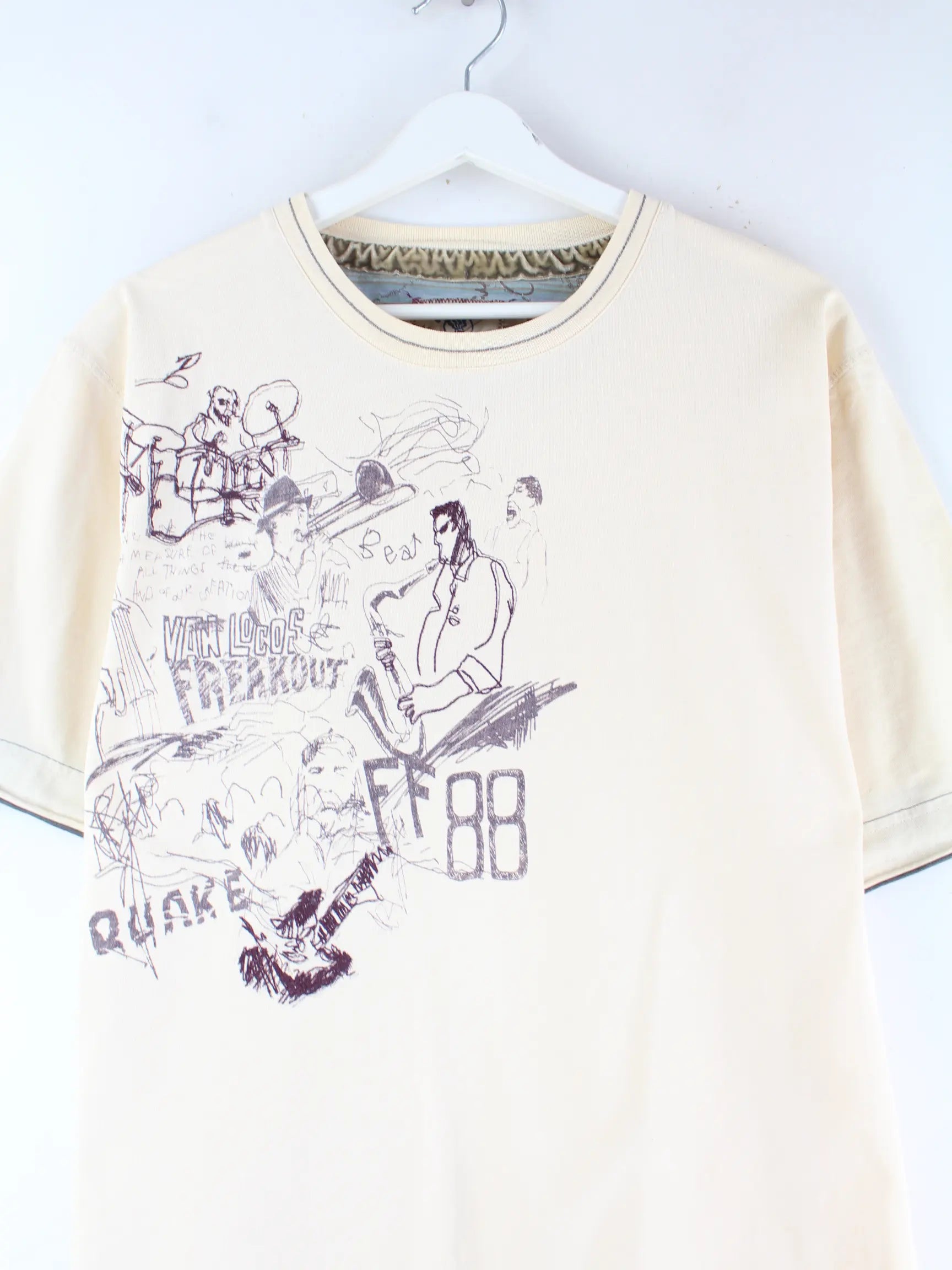 Vintage 00s Band Print Heavy T-Shirt Beige XL