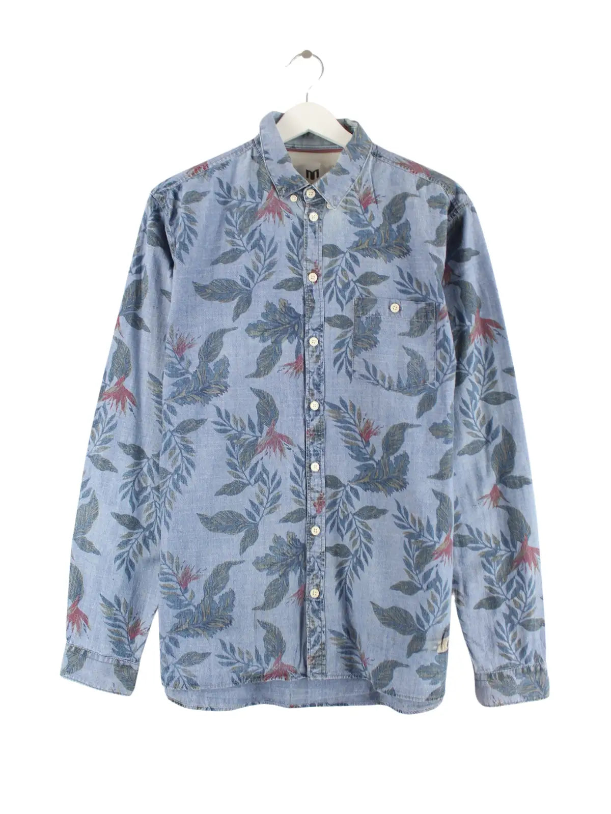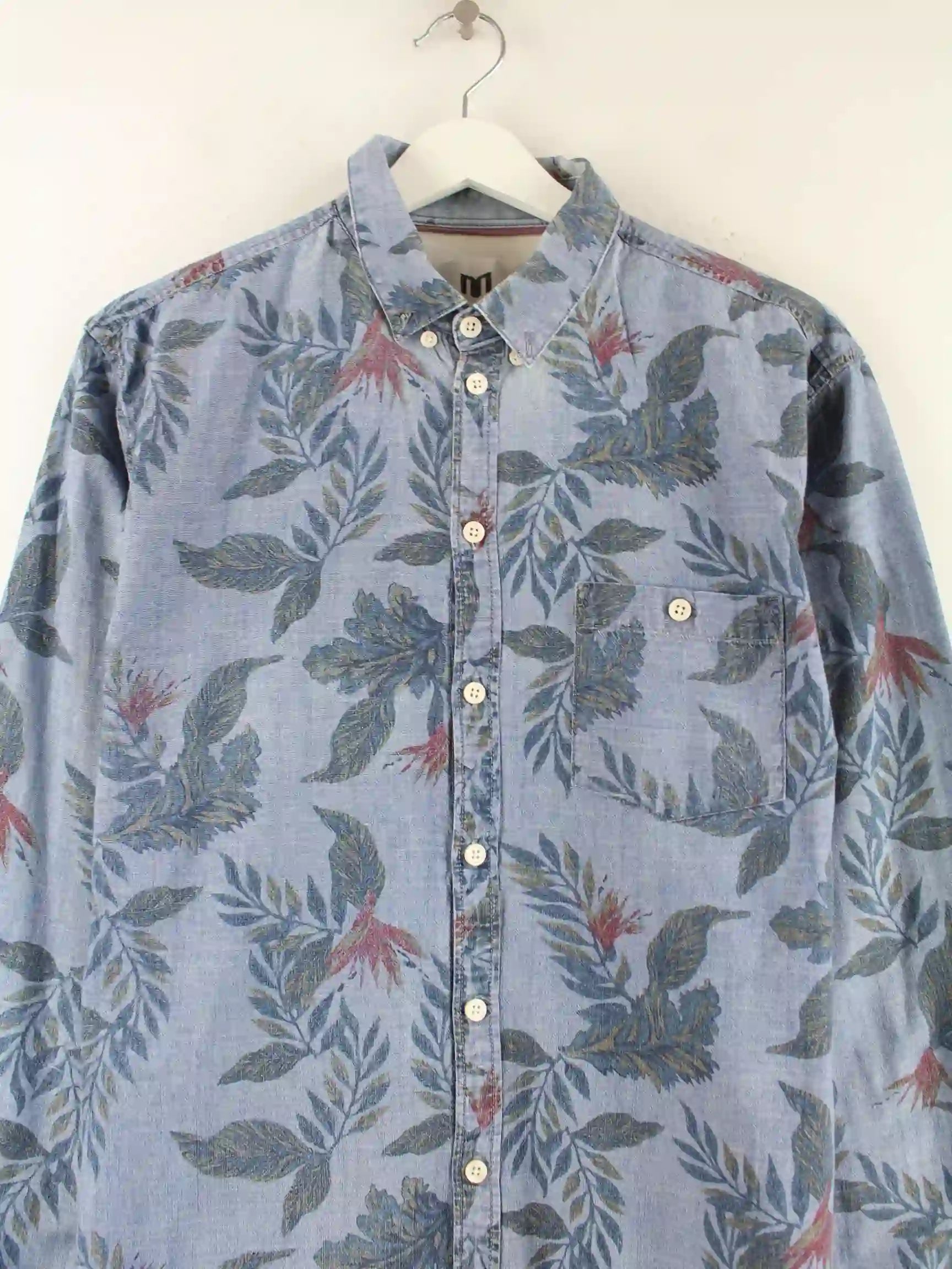 Vintage 00s Flower Pattern Hemd Blau L