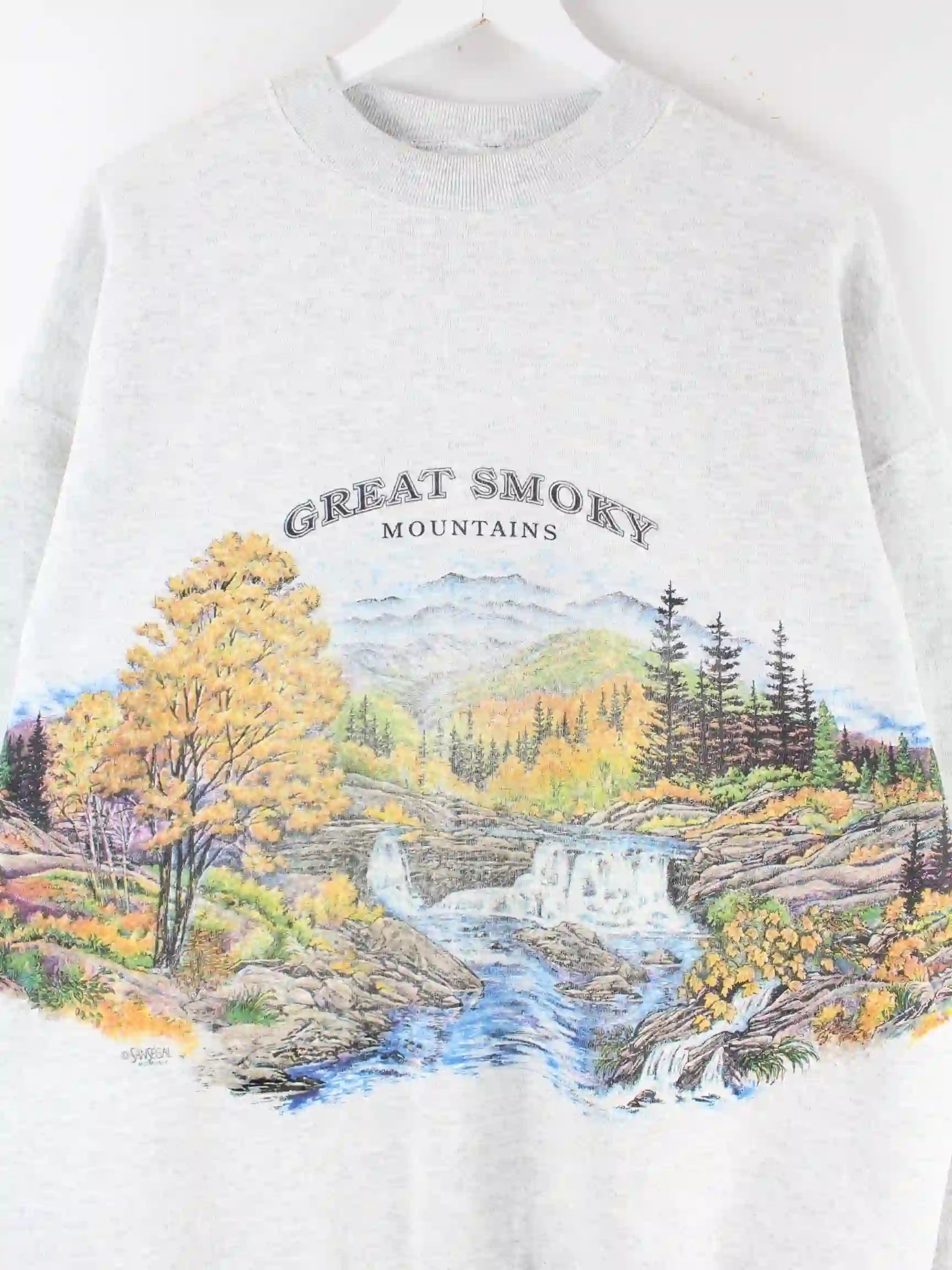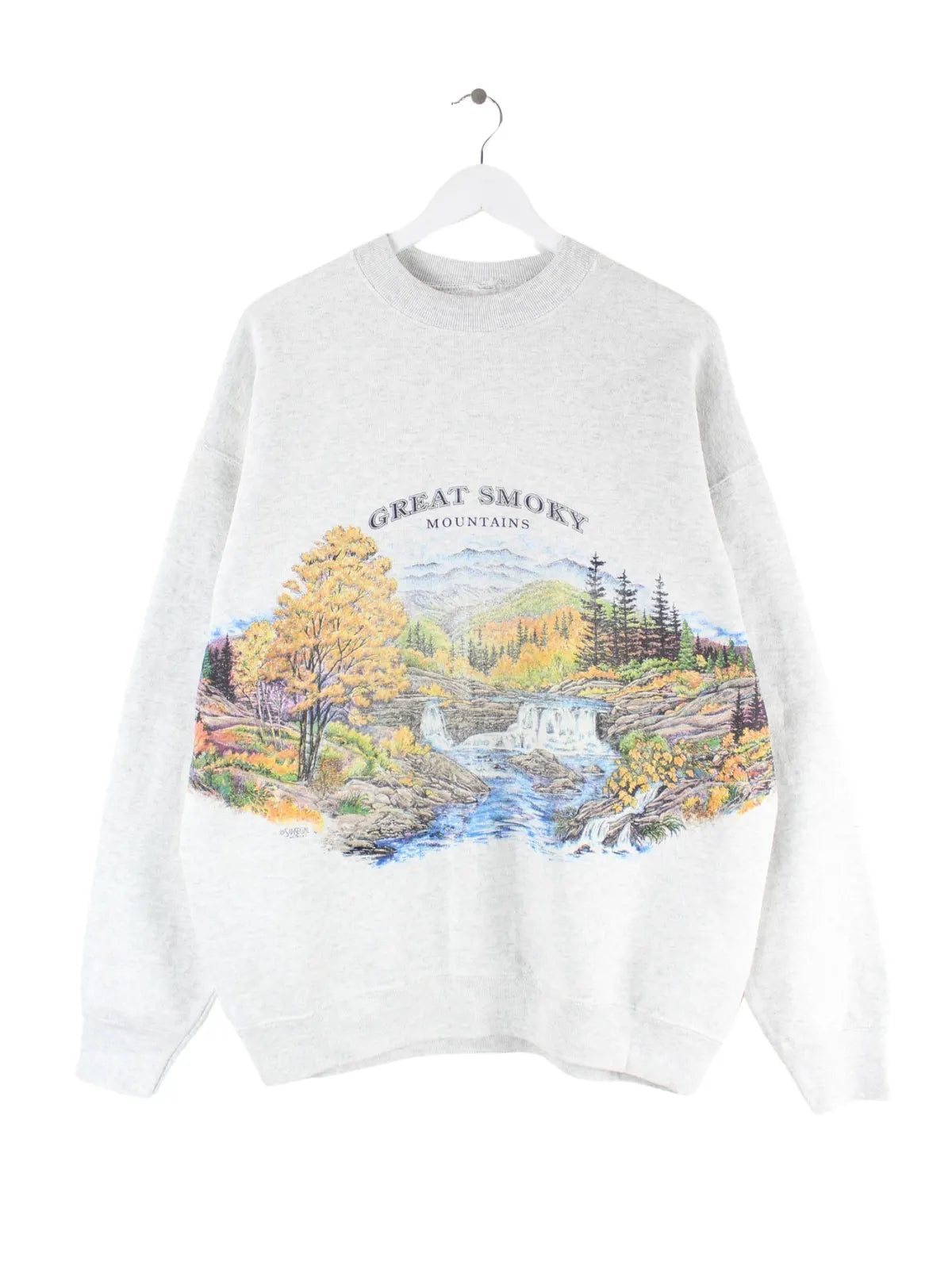 Vintage 00s Great Smoky Mountains Print Sweater Grau XXL