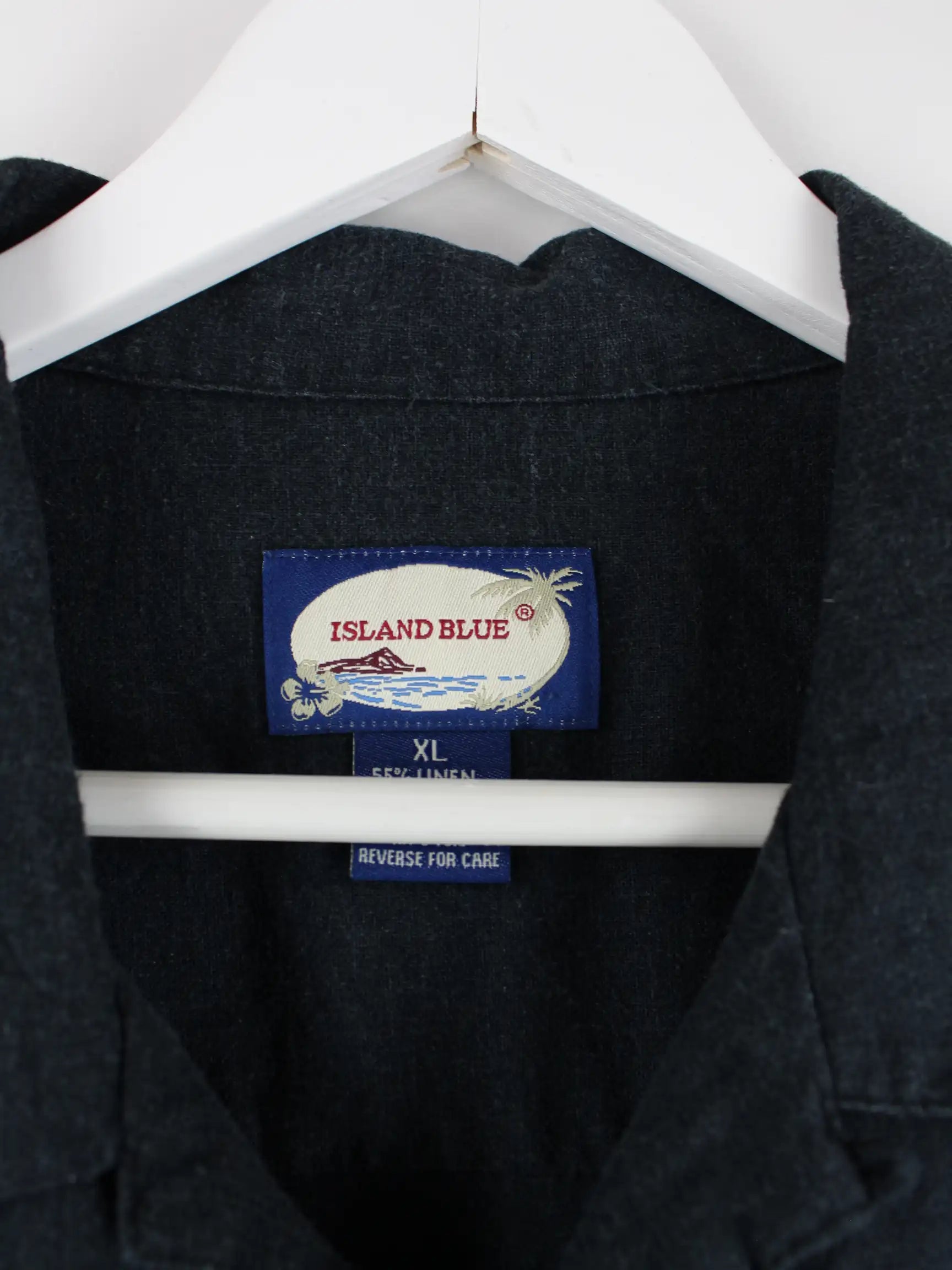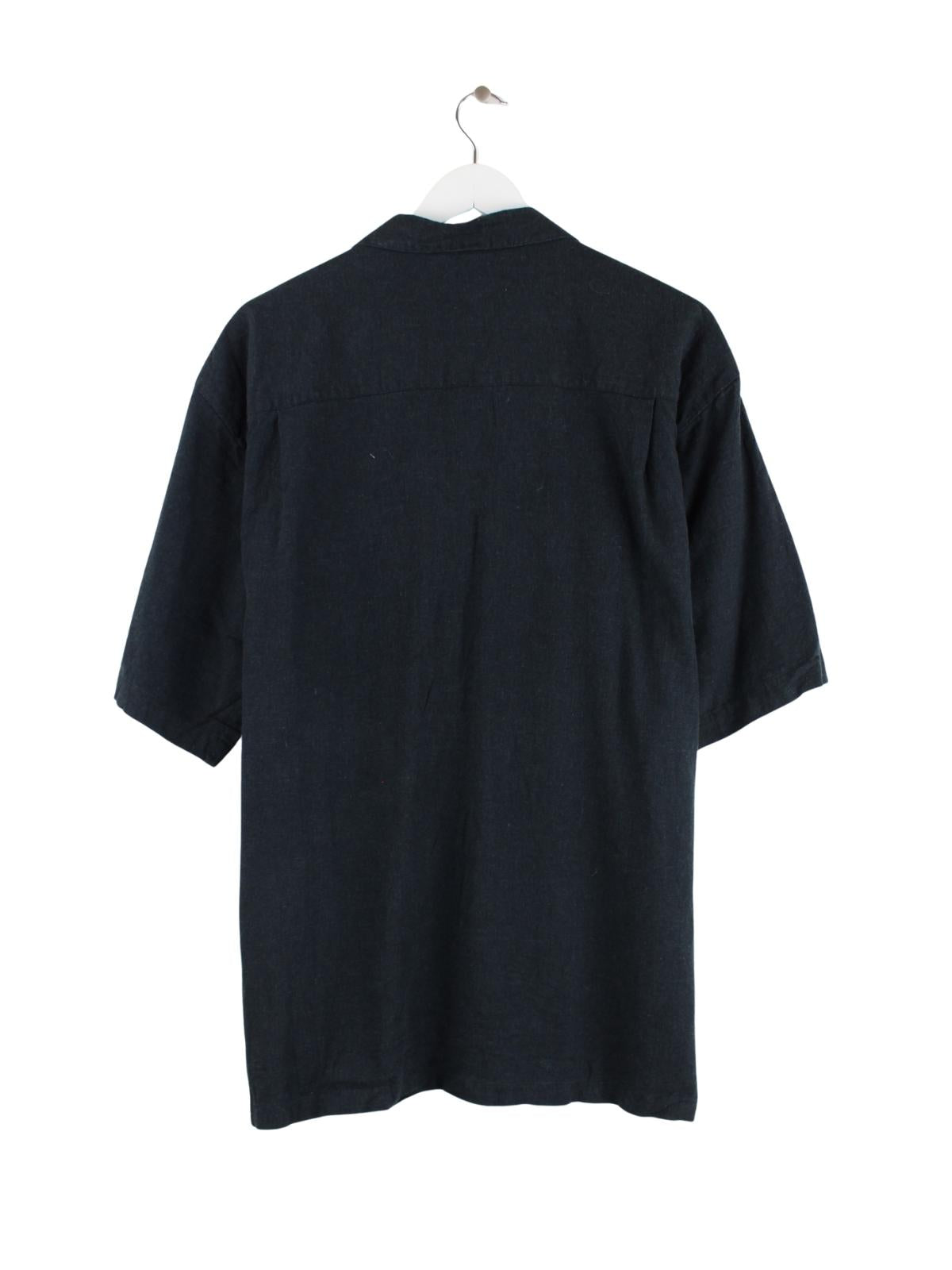 Schwarzes Vintage Freizeit Hemd in Größe XL. Es ist aus Leinen hergestellt und in sehr gutem Zustand im Angebot.
