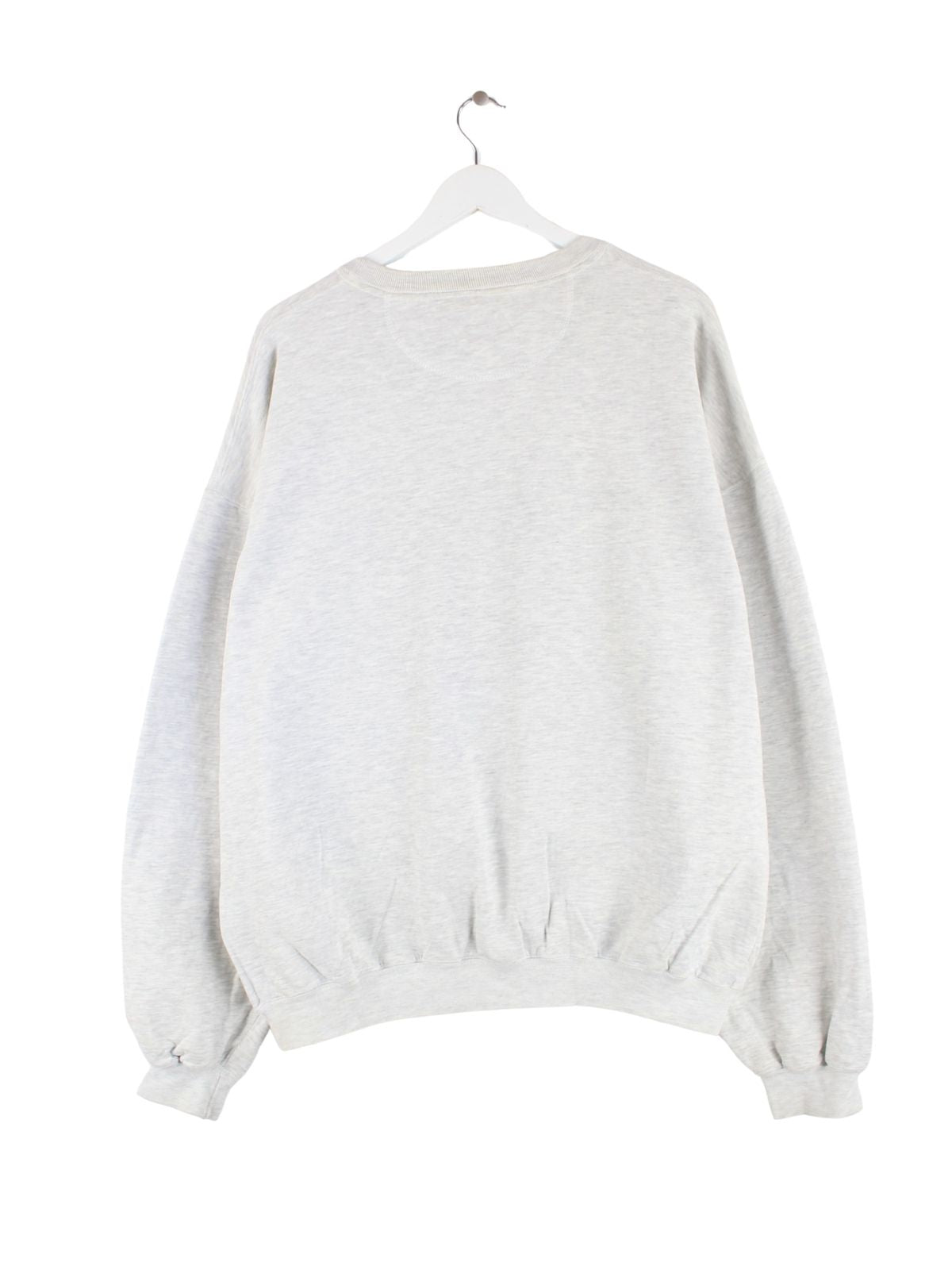 Grauer Vintage Sweater in Größe L. Er ist aus einer Baumwollmischung gefertigt und in gutem Zustand auf Lager.