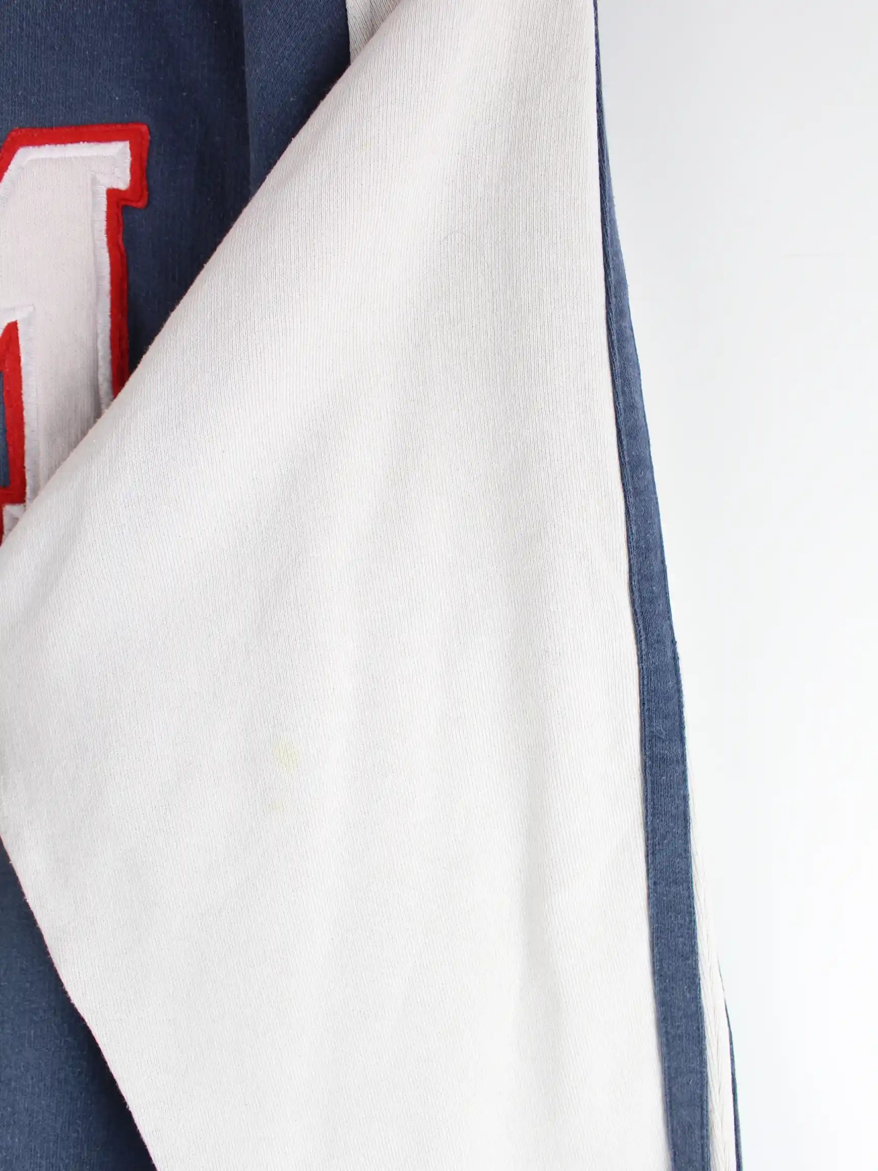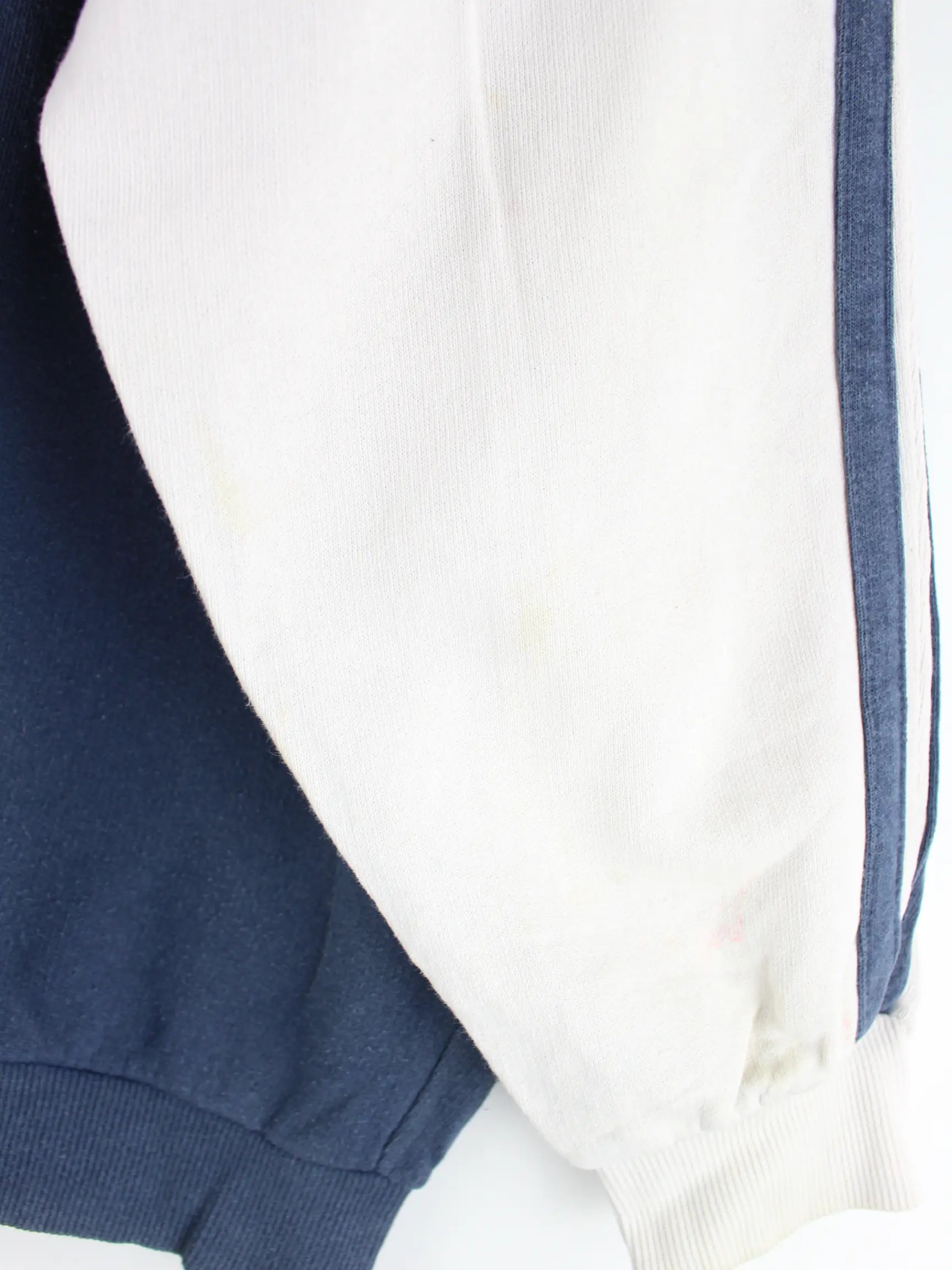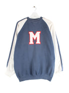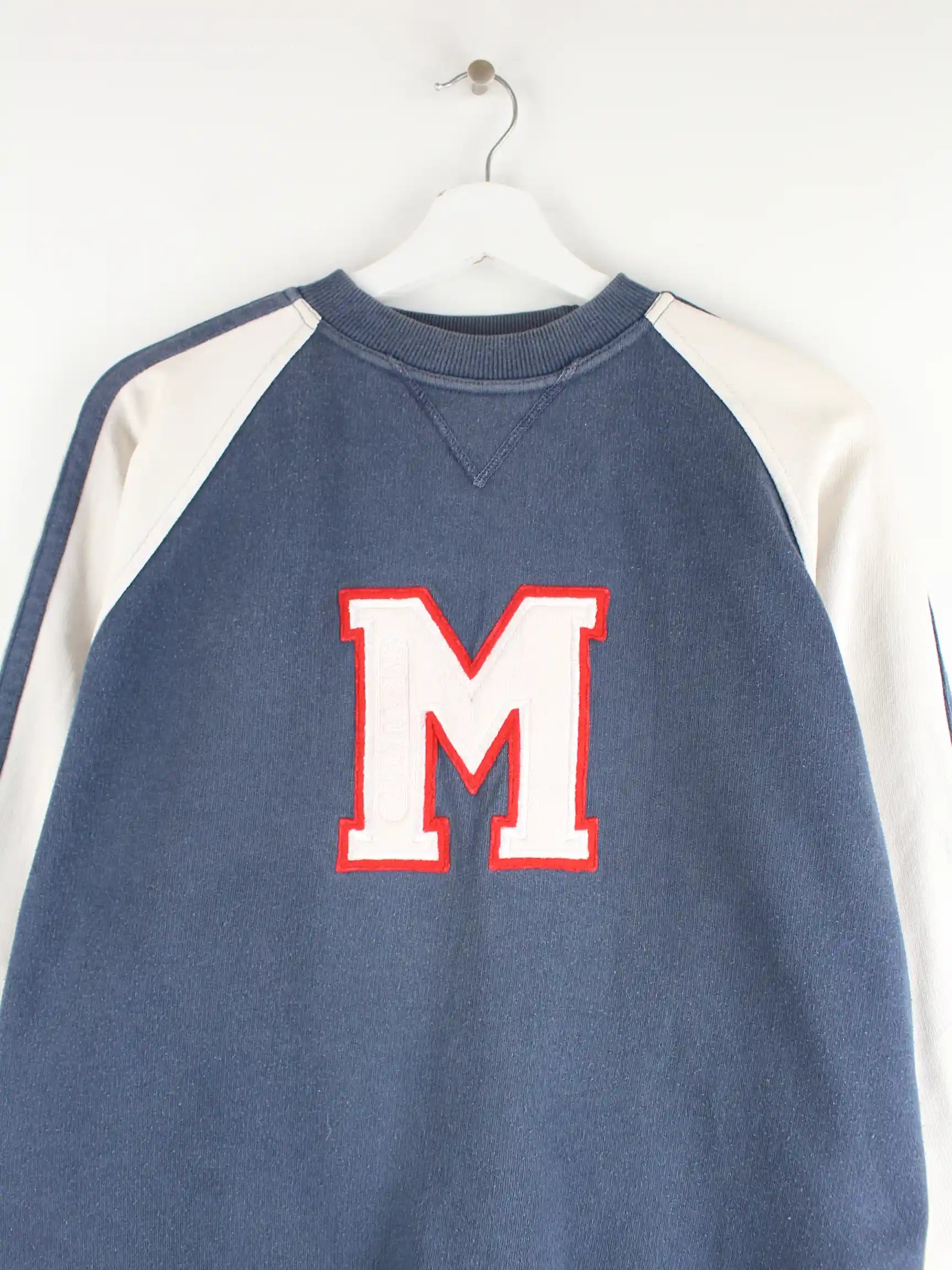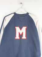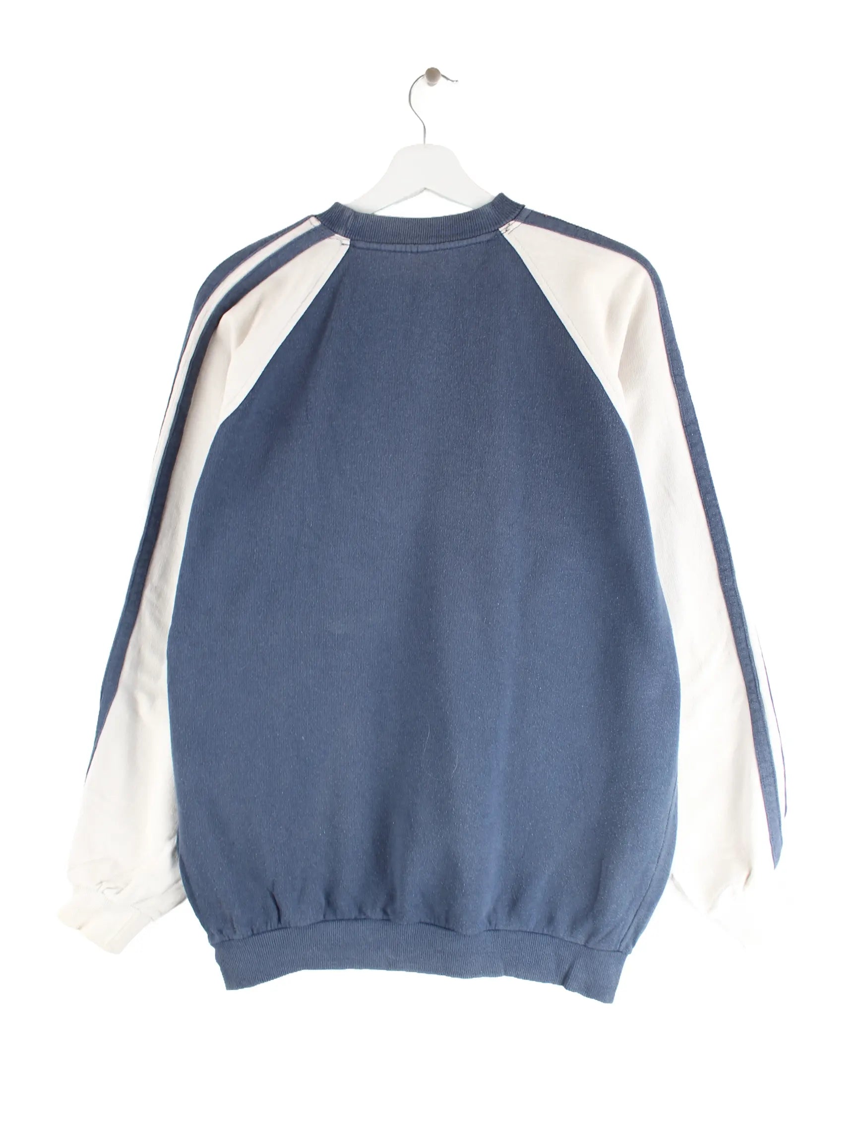 Blauer Vintage Sweater in Größe S. Er ist aus einer Baumwollmischung angefertigt. Den Zustand würden wir als 'In Ordnung' bezeichnen (vergl. Bilder).