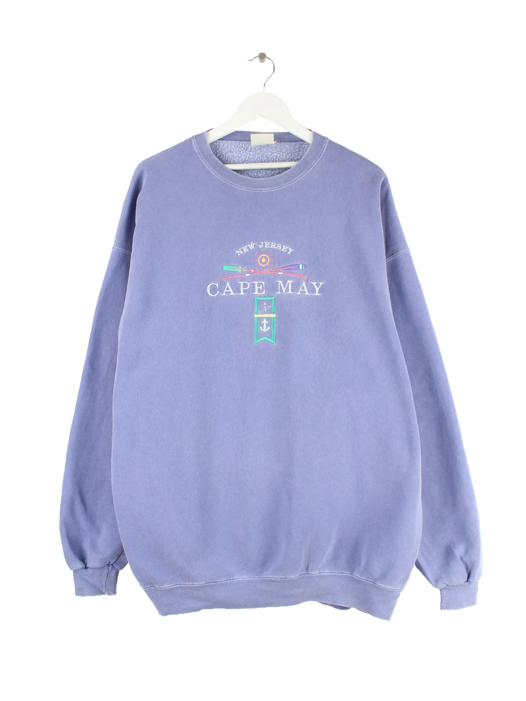 Vintage Sweater in Größe XXL. Er ist aus einer Baumwollmischung und in Blau im Bestand.