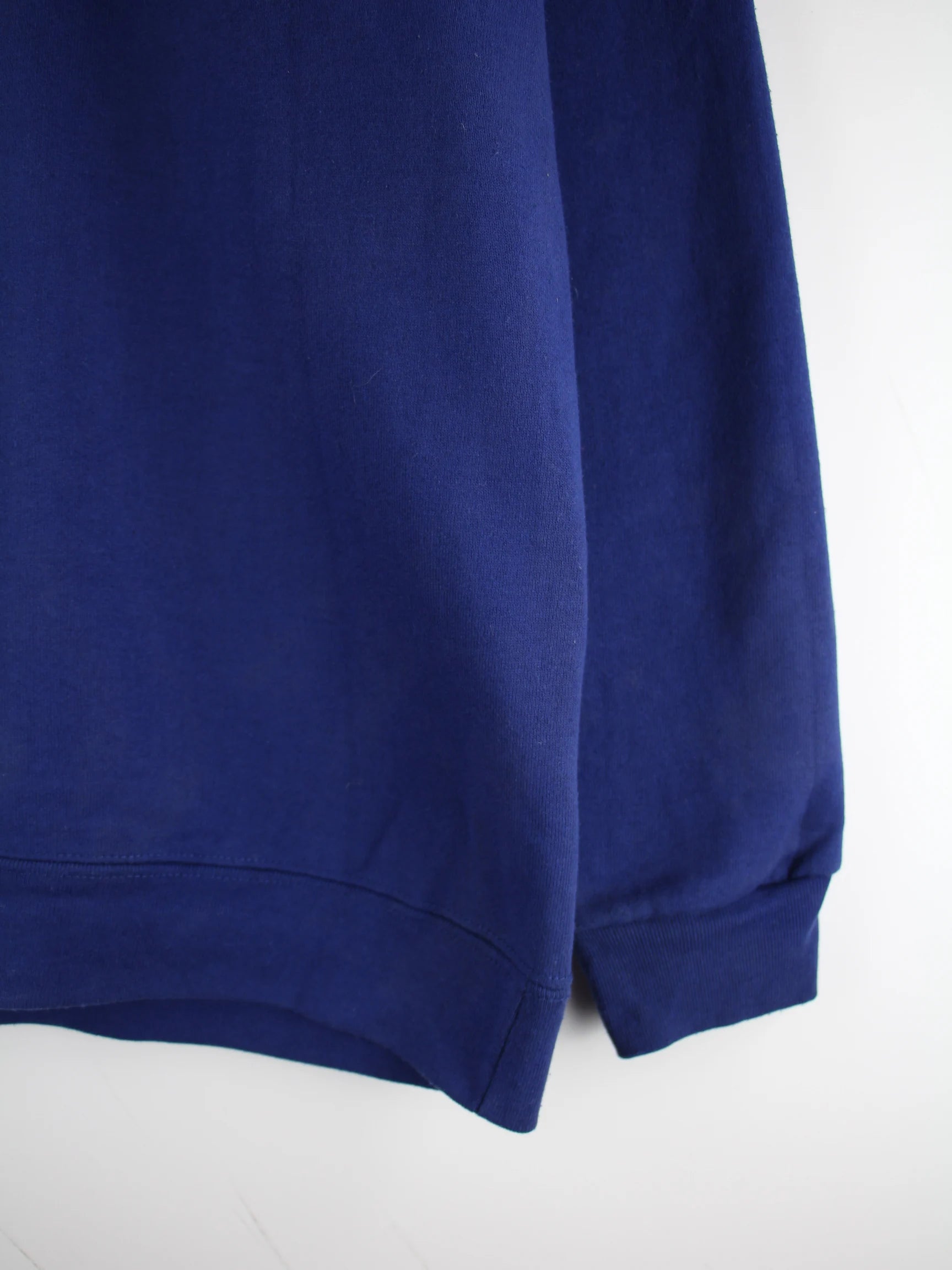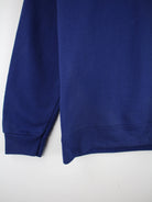 Vintage Sweater in Größe L. Er ist aus einer Baumwollmischung hergestellt und in Blau in Stock.