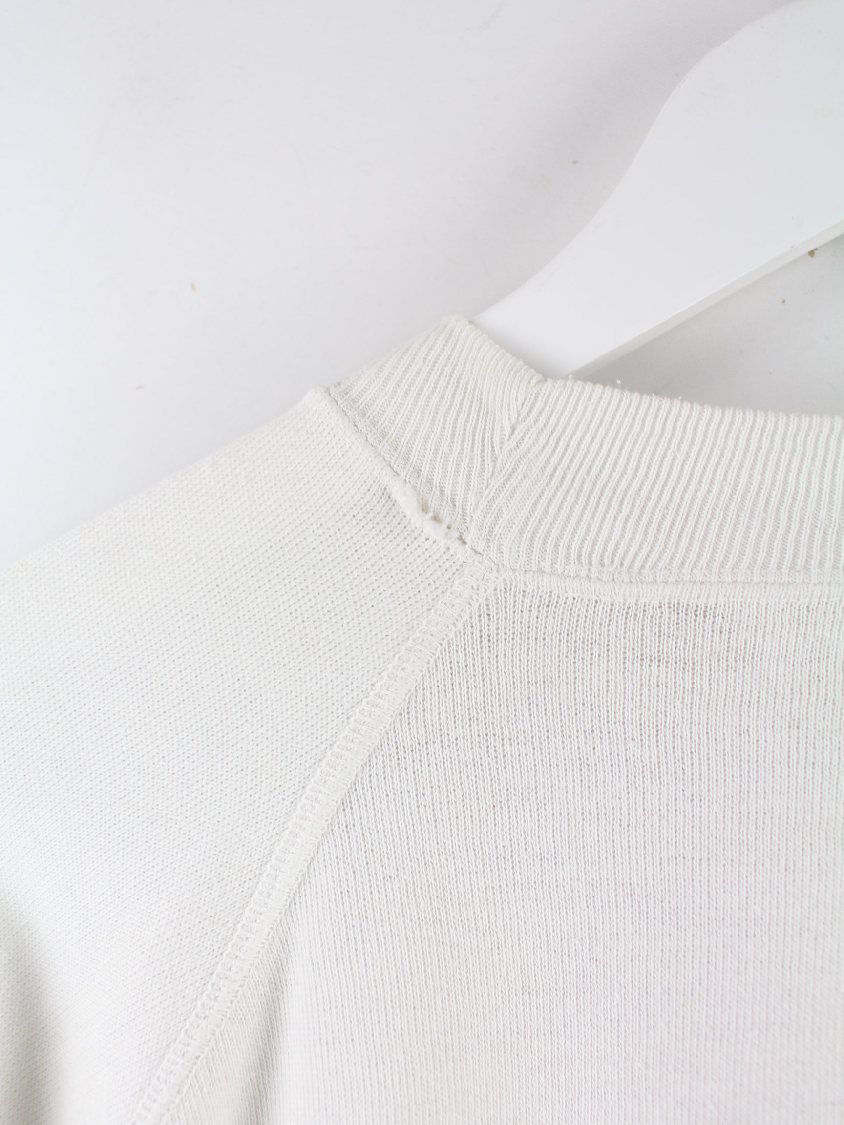 Weißer Vintage Sweater aus den 80'ern in Größe S. Er ist aus einer Baumwollmischung hergestellt und in gutem Zustand in Stock. Mit schickem Panther Print.