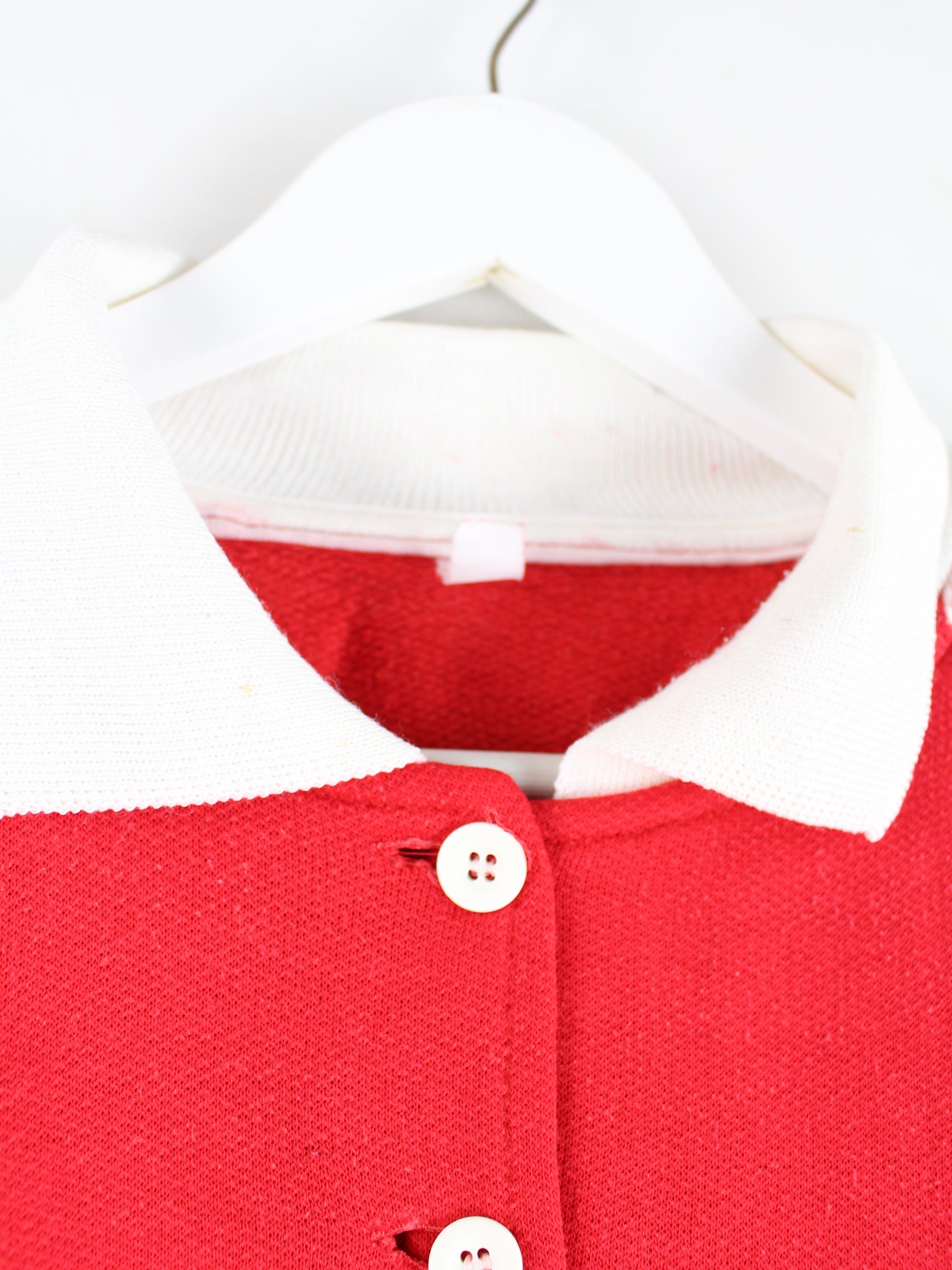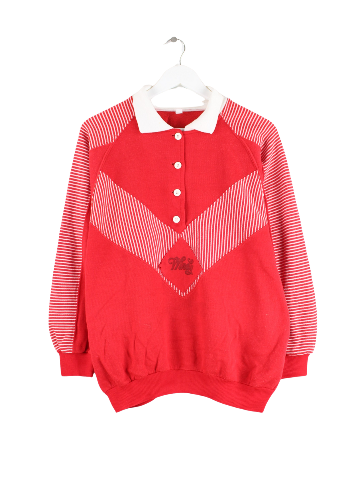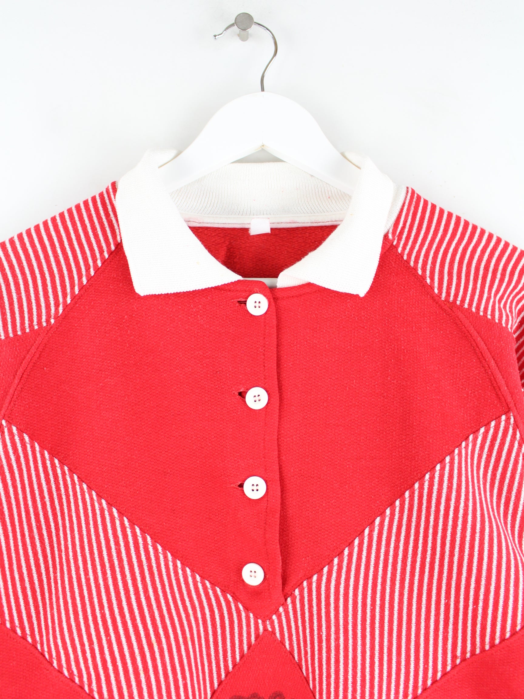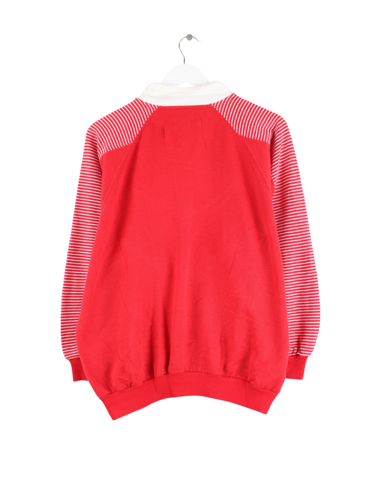 Roter Vintage Sweater aus den 80'ern in Größe M. Er ist aus einer Baumwollmischung produziert und in gutem Zustand bei uns zu bekommen.