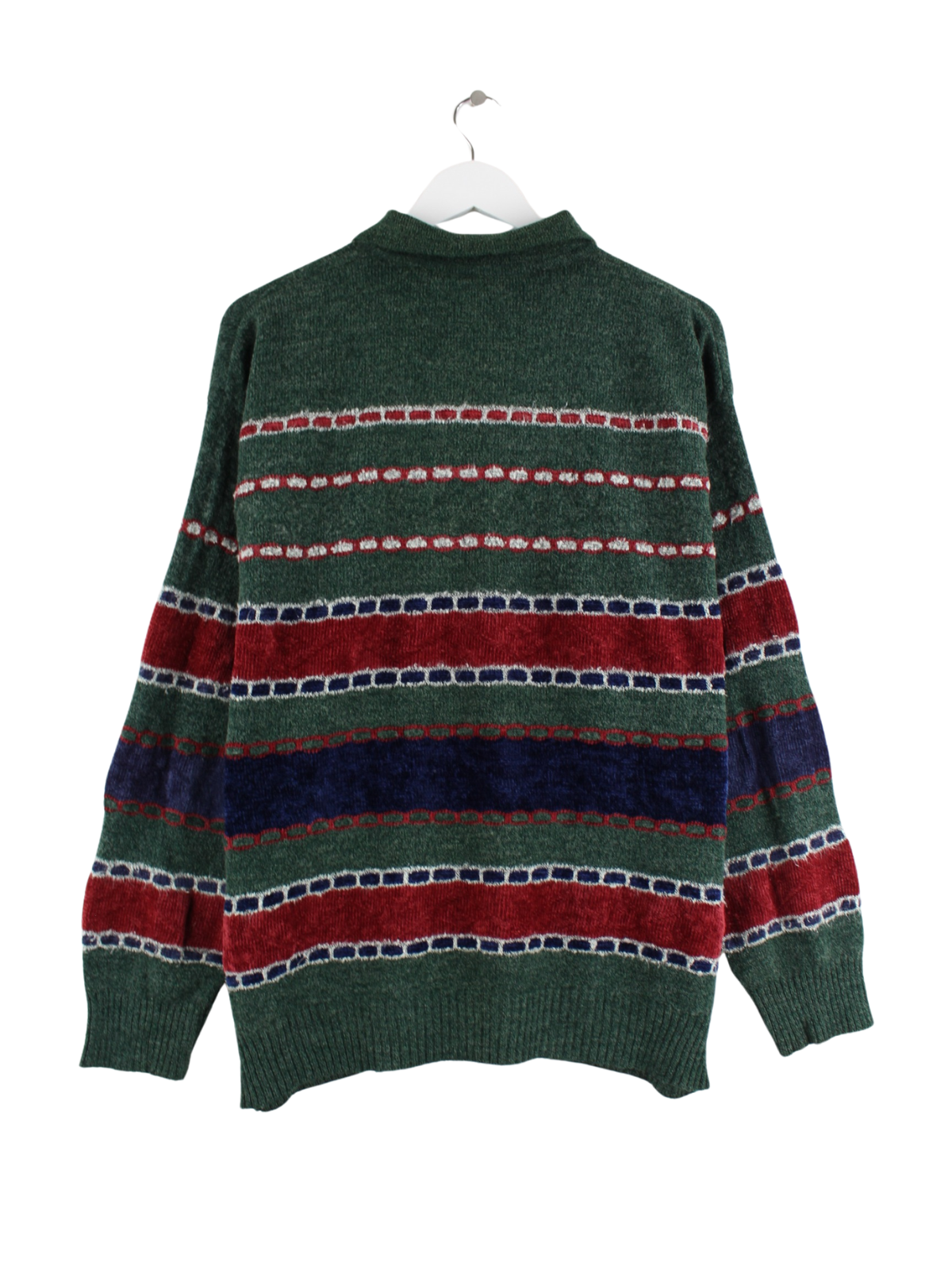 Grüner Vintage Pullover aus den 80'ern in Größe L. Er ist aus einer Wollmischung produziert und in sehr gutem Zustand vorrätig.