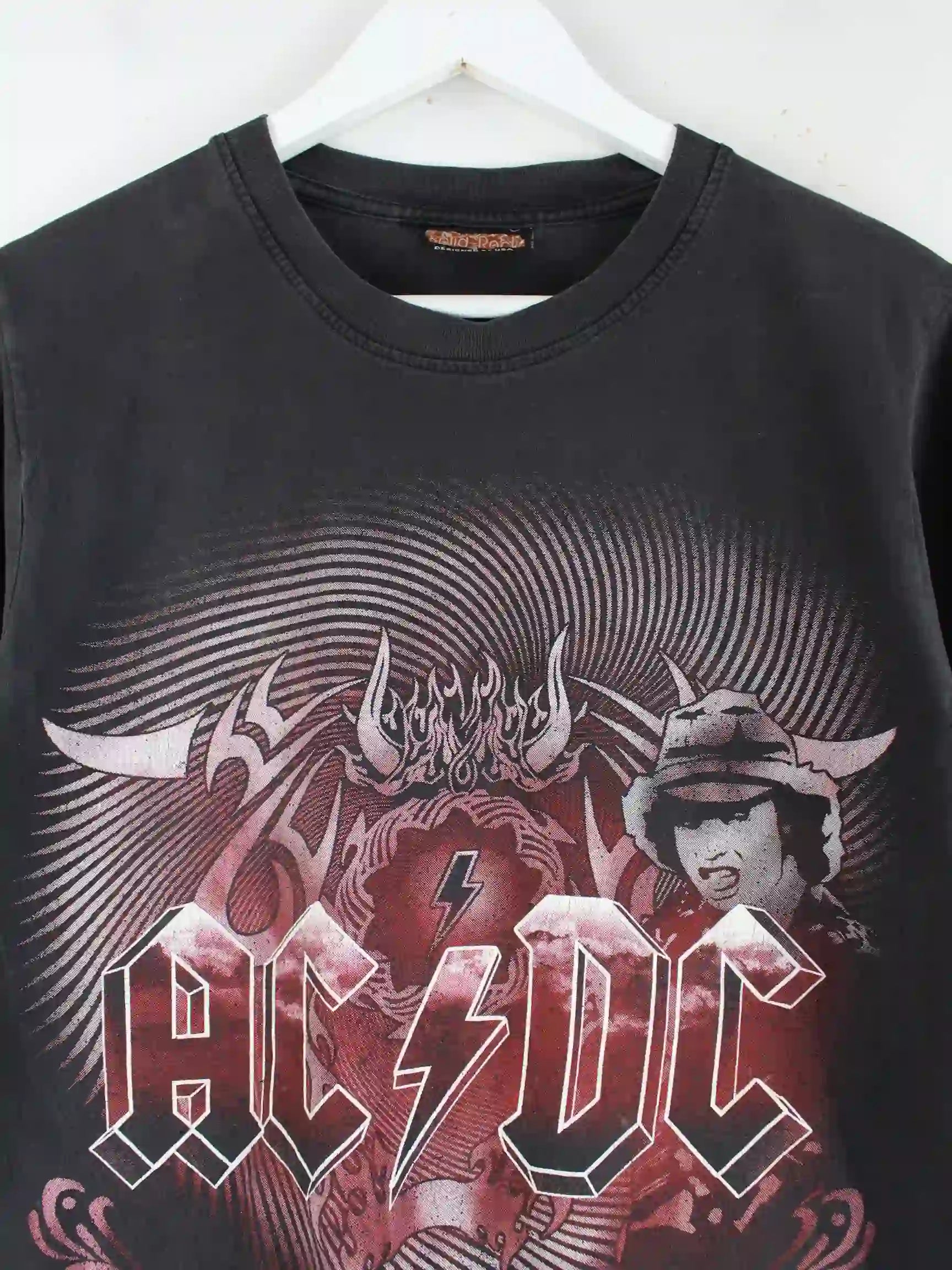 Vintage 90s AC-DC Distressed Faded Print T-Shirt Schwarz S