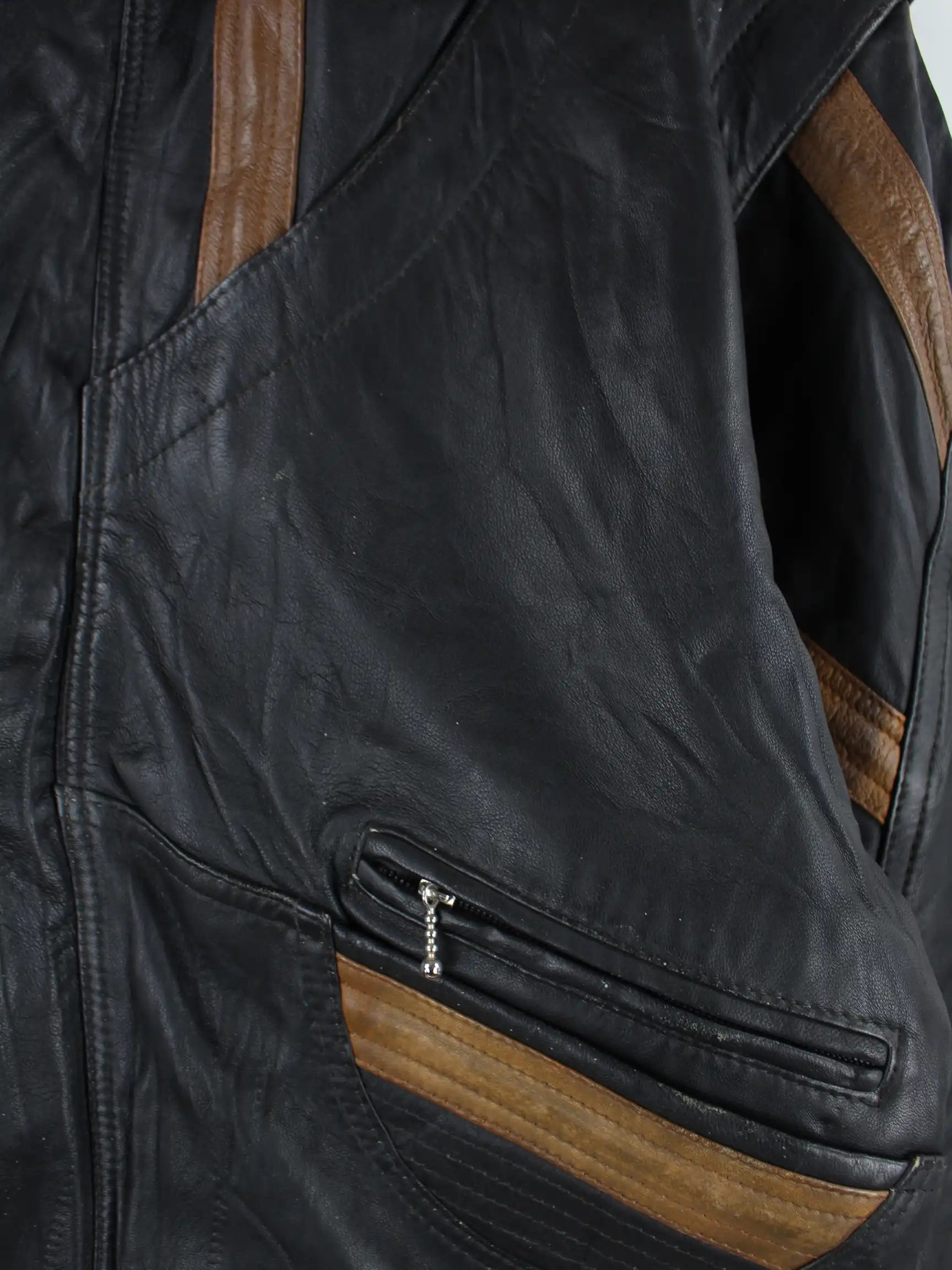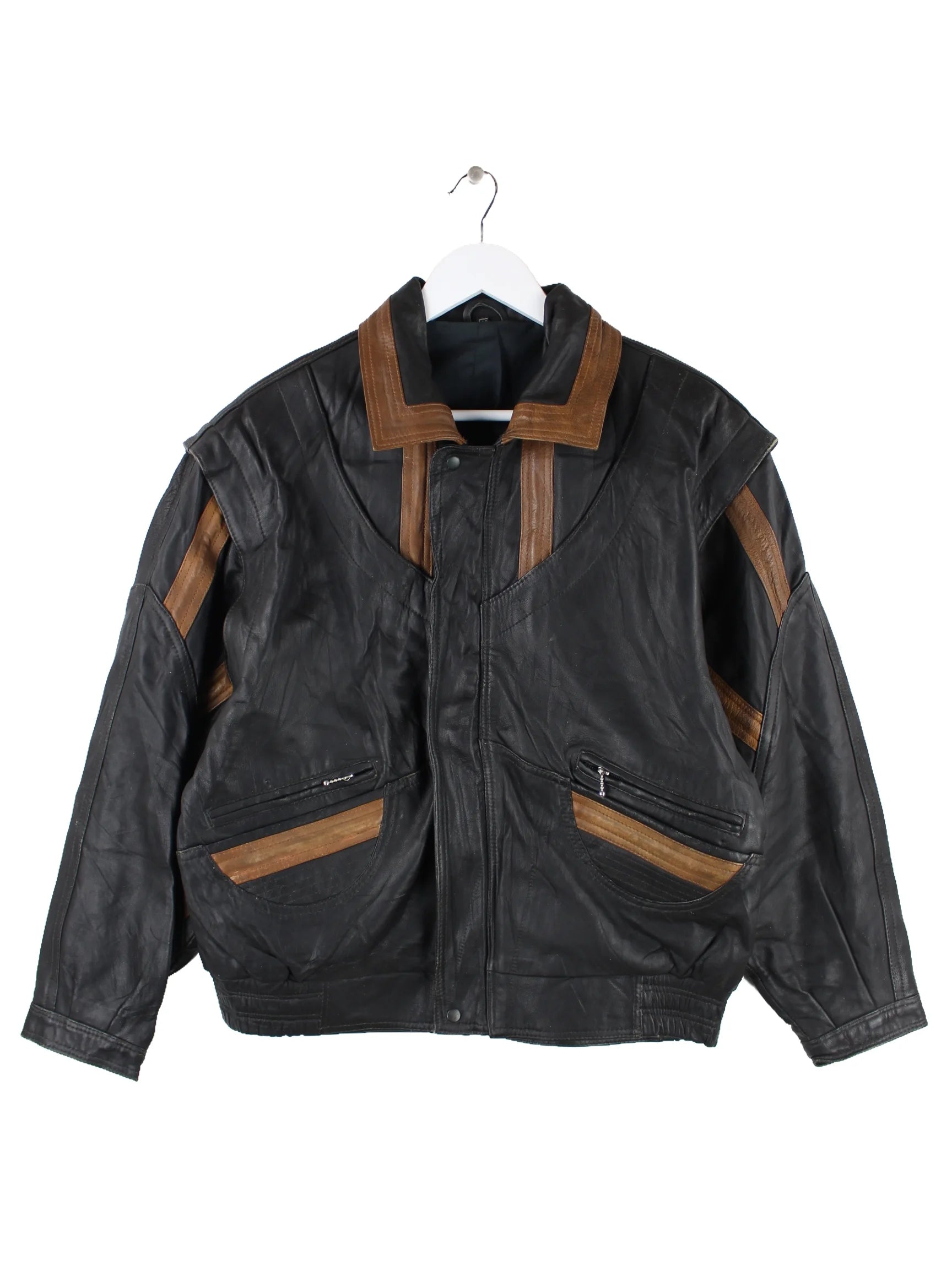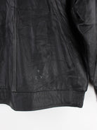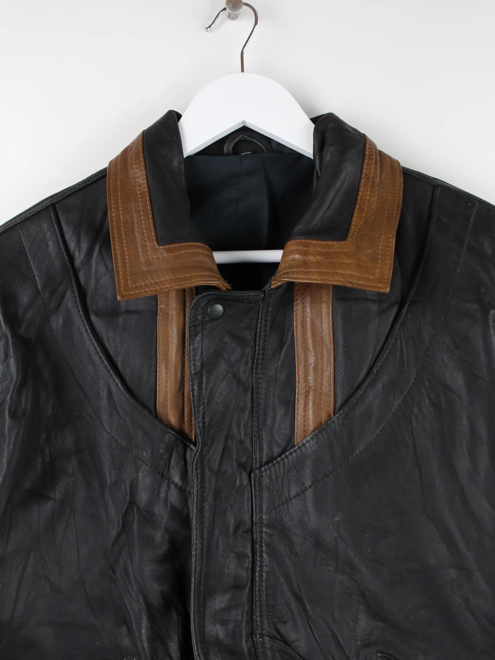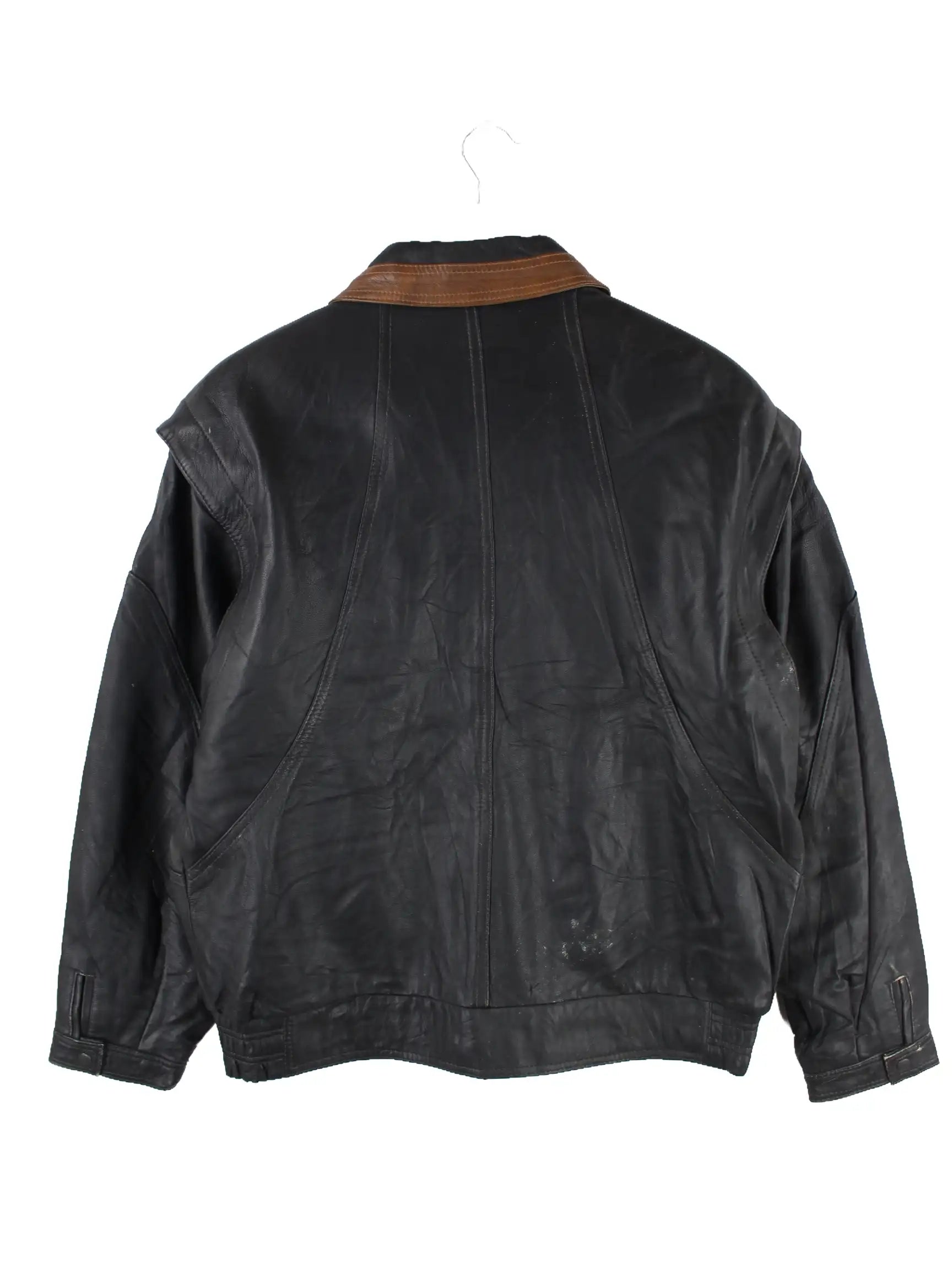 Vintage Jacke in Größe M aus den 90'ern. Sie ist aus Leder und in Schwarz vorrätig.