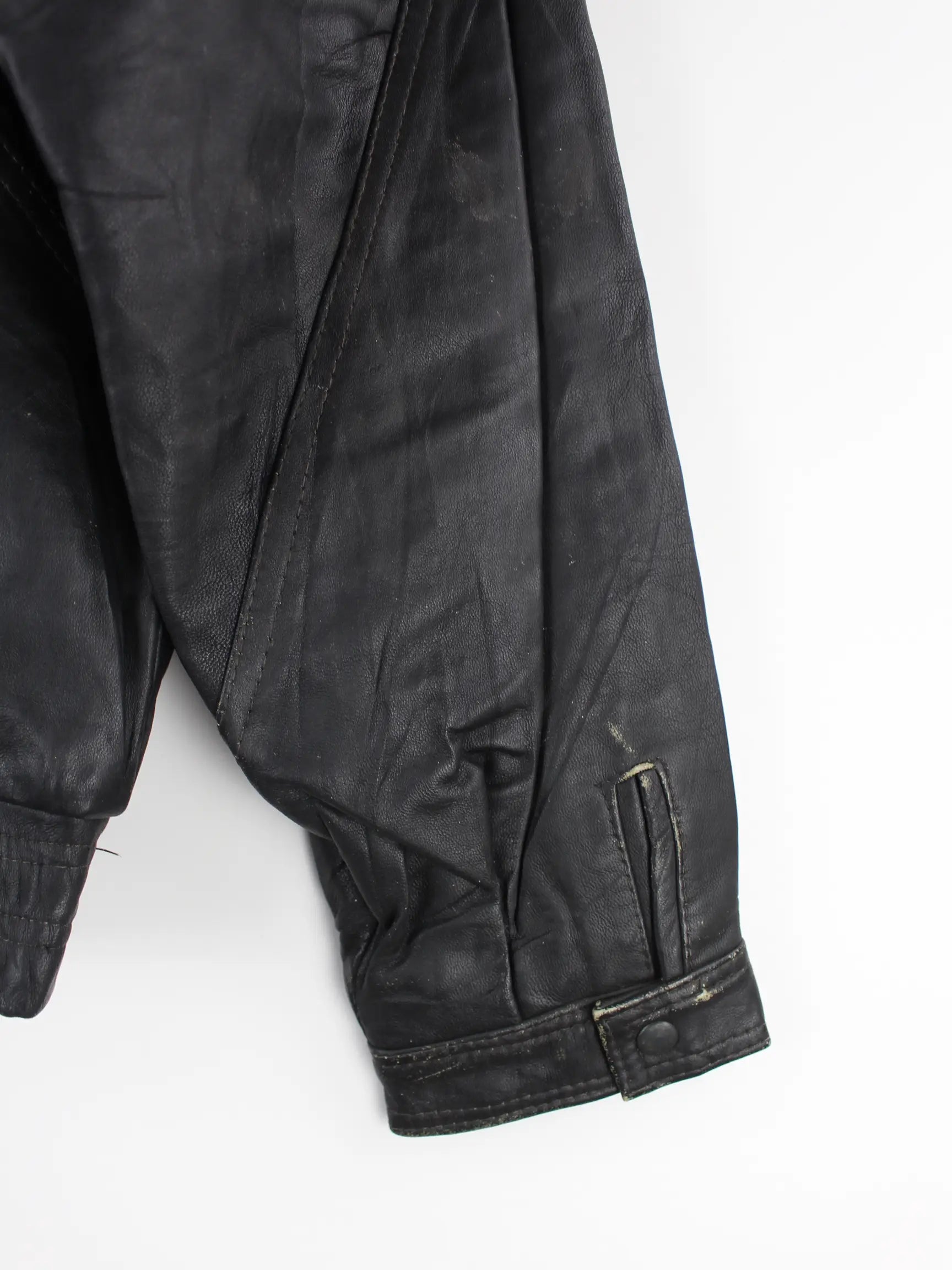 Vintage 90s Bomber Leder Jacke Schwarz M