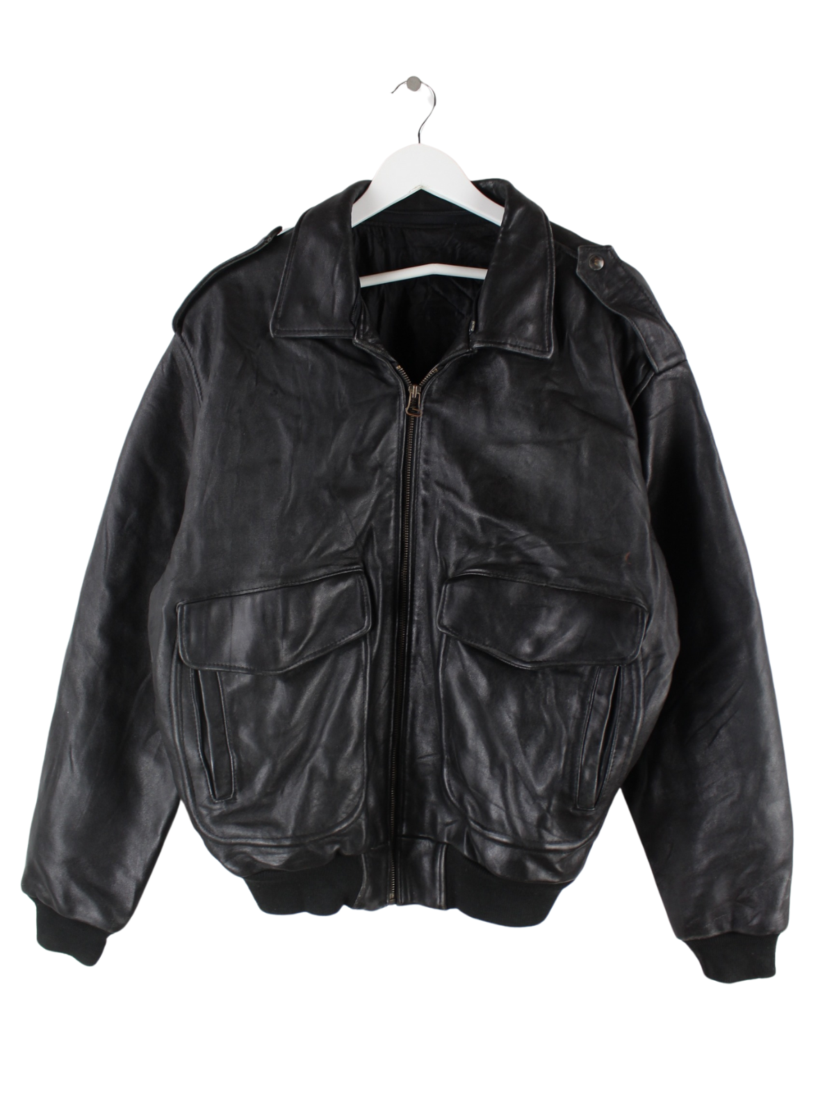 Vintage 90s Bomber Leder Jacke Schwarz XL