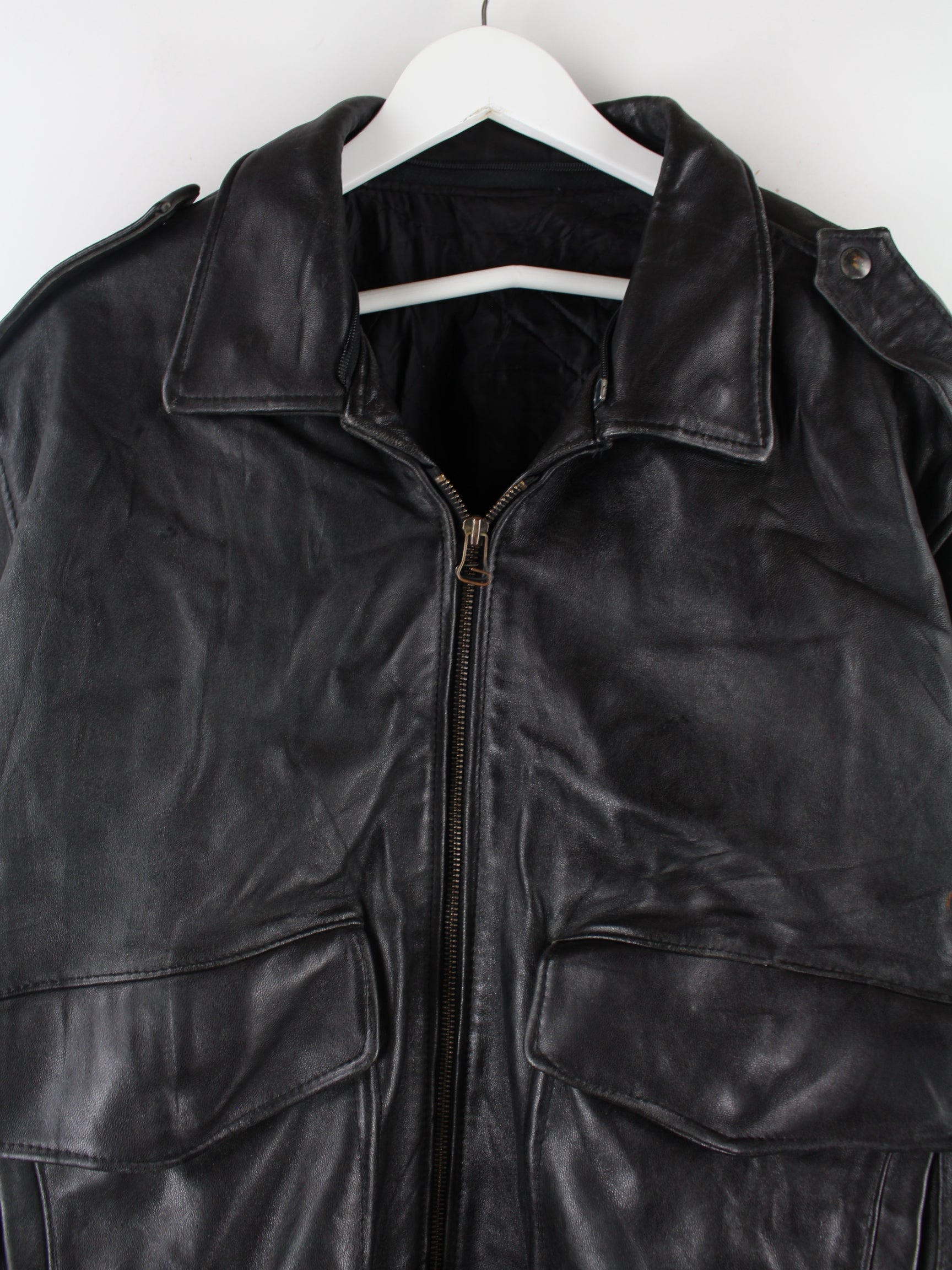 Vintage Jacke in Größe XL aus den 90'ern. Sie ist aus Leder hergestellt und in Schwarz in Stock.