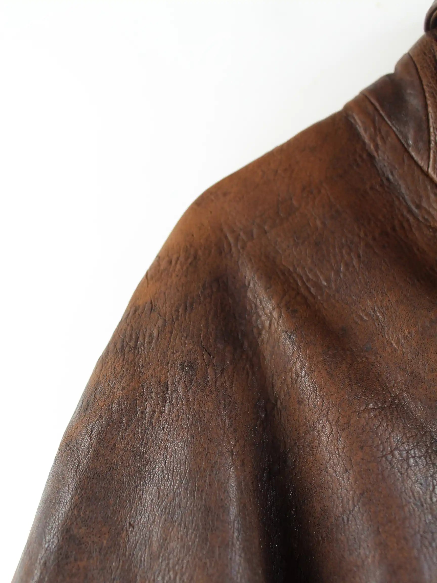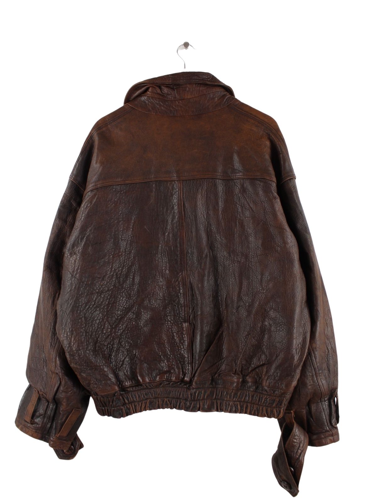 Braune Vintage Jacke aus den 90'ern in Größe XXL. Sie ist aus Leder gefertigt. Den Zustand würden wir als 'In Ordnung' bezeichnen (vergl. Bilder).