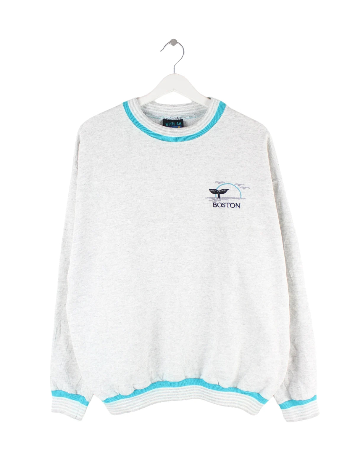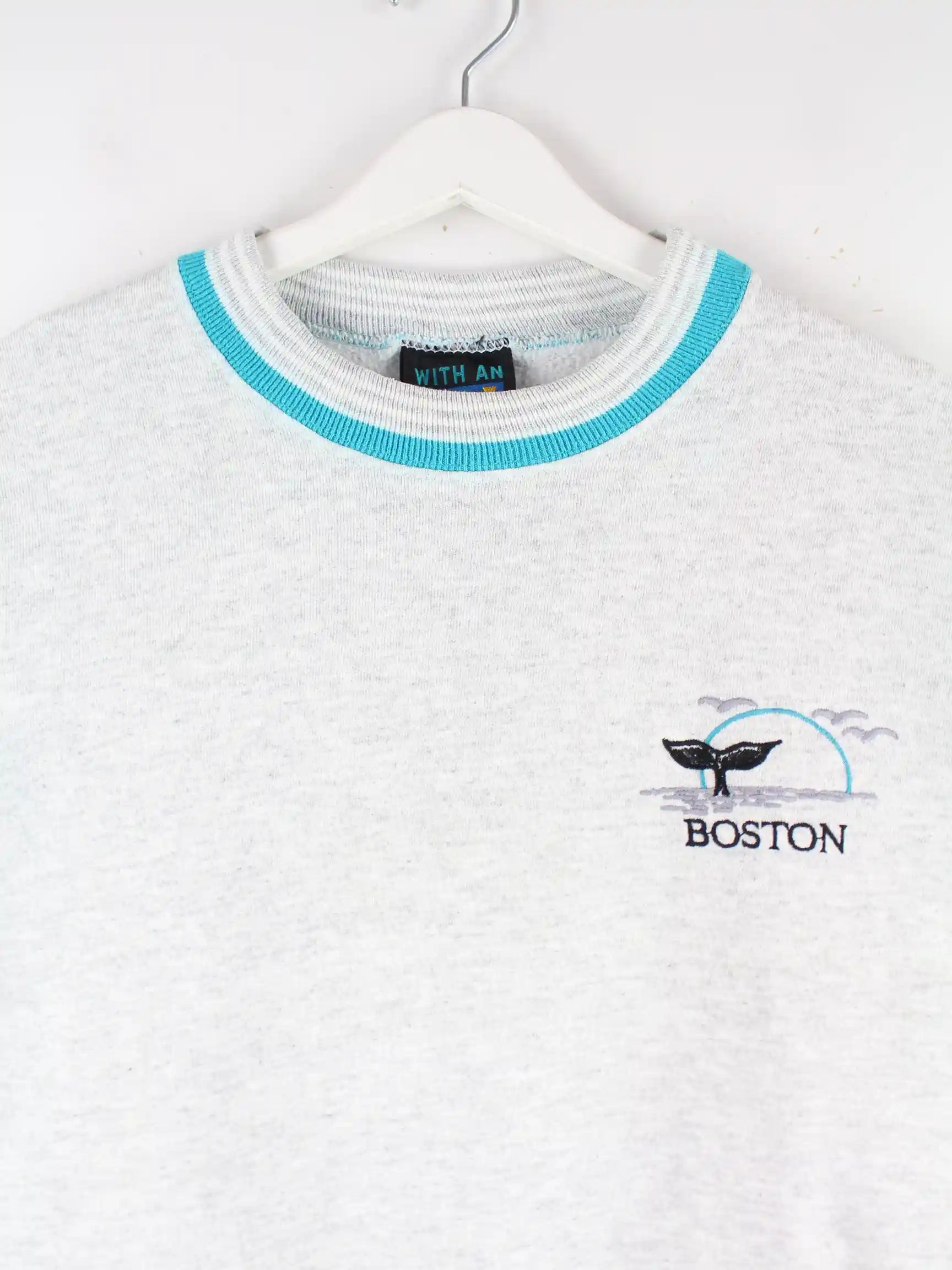 Vintage 90s Boston Embroidered Sweater Grau L