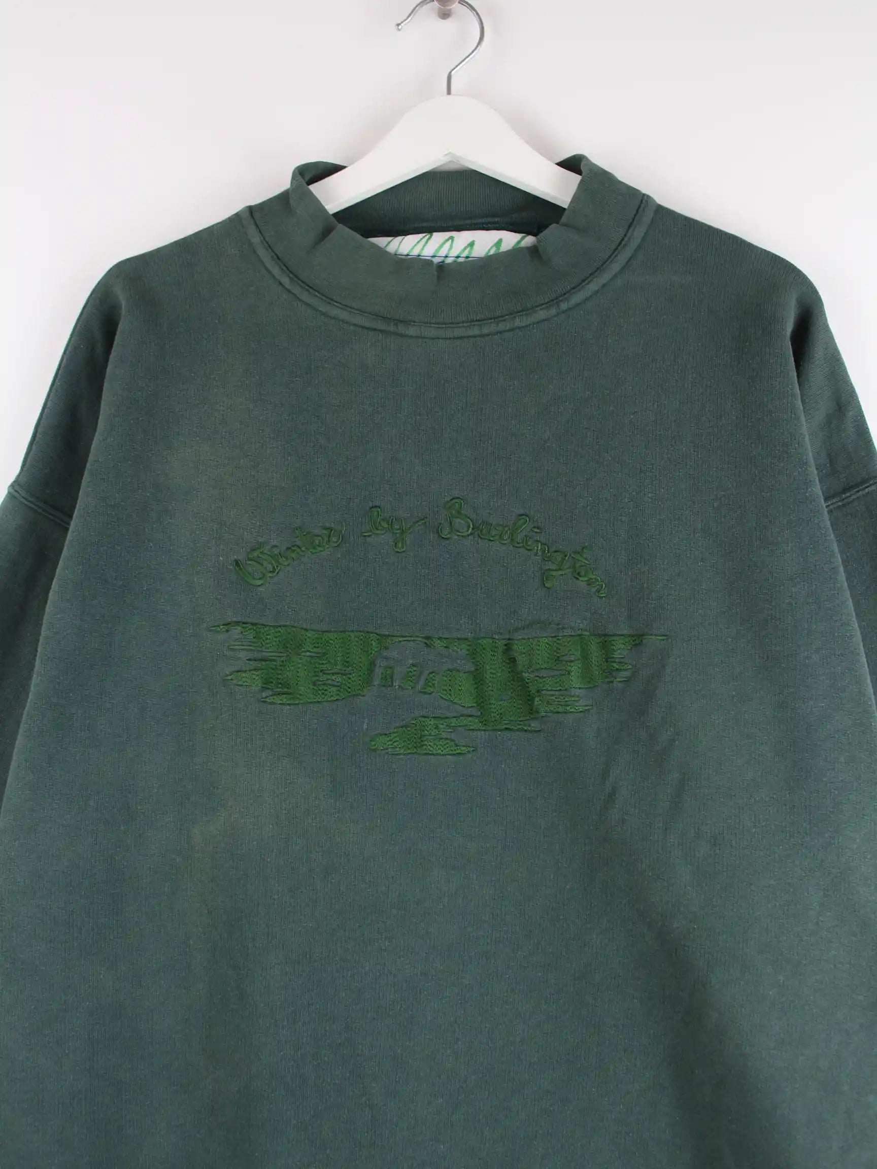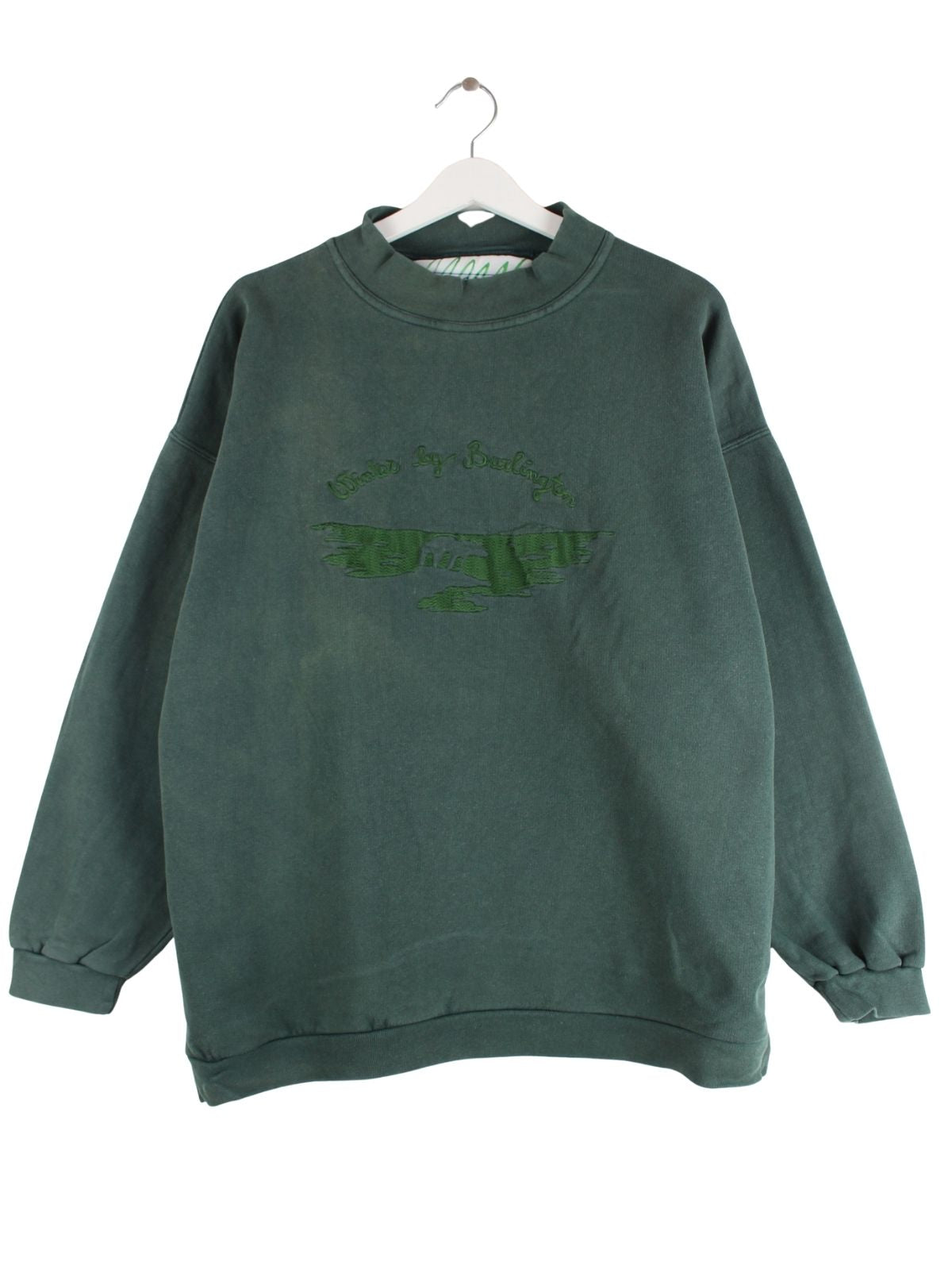 Grüner Vintage Sweater aus den 90'ern in Größe L. Er ist aus einer Baumwollmischung gefertigt. Den Zustand würden wir als 'In Ordnung' bezeichnen (vergl. Bilder).