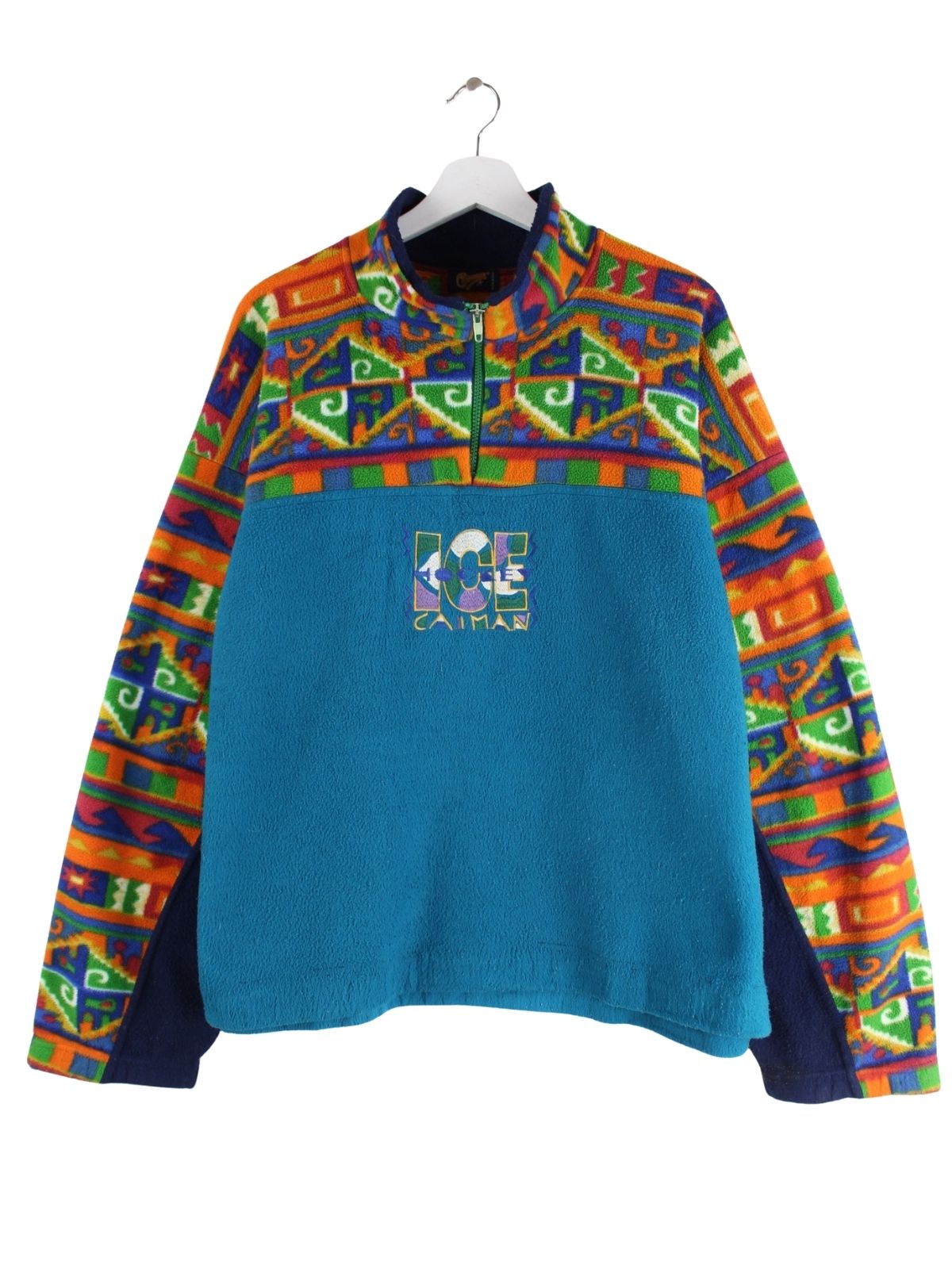 Vintage 90s Caiman Ice Hockey Half Zip Fleece Jacke Blau XL