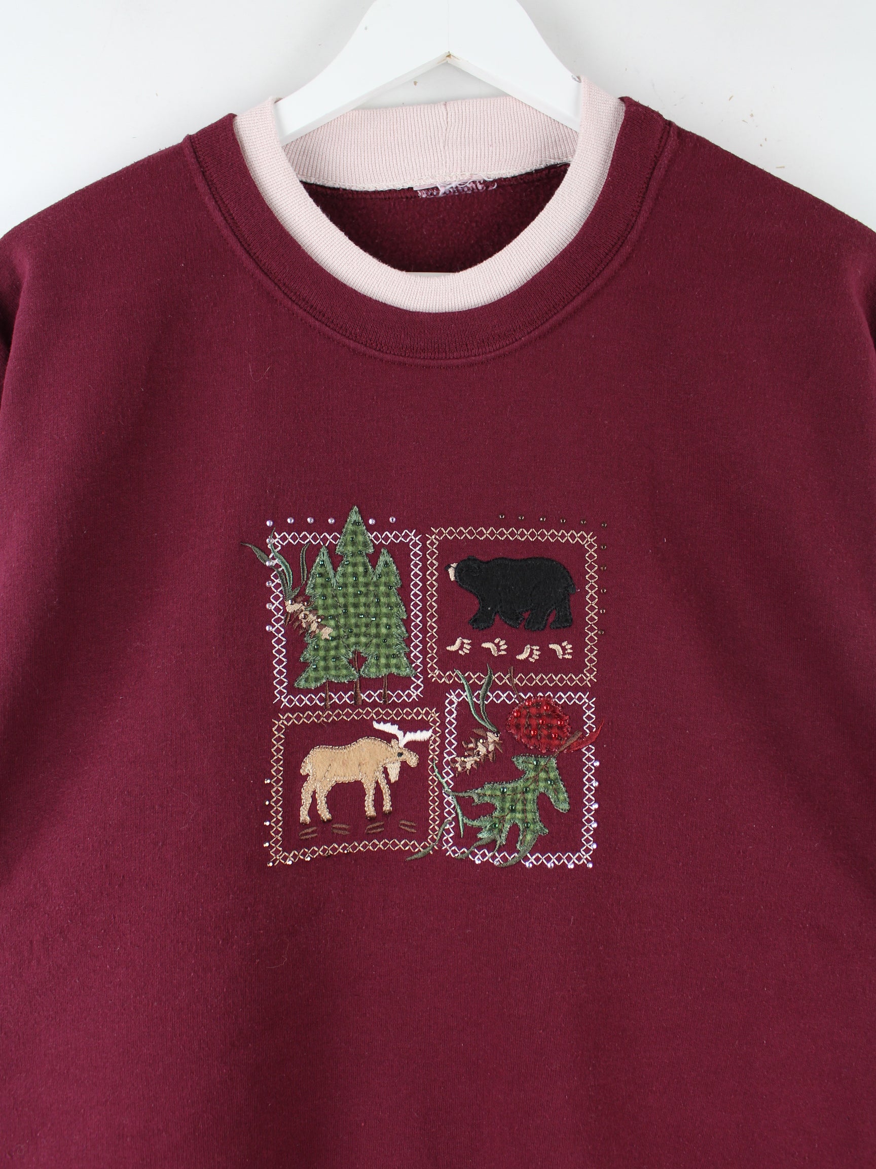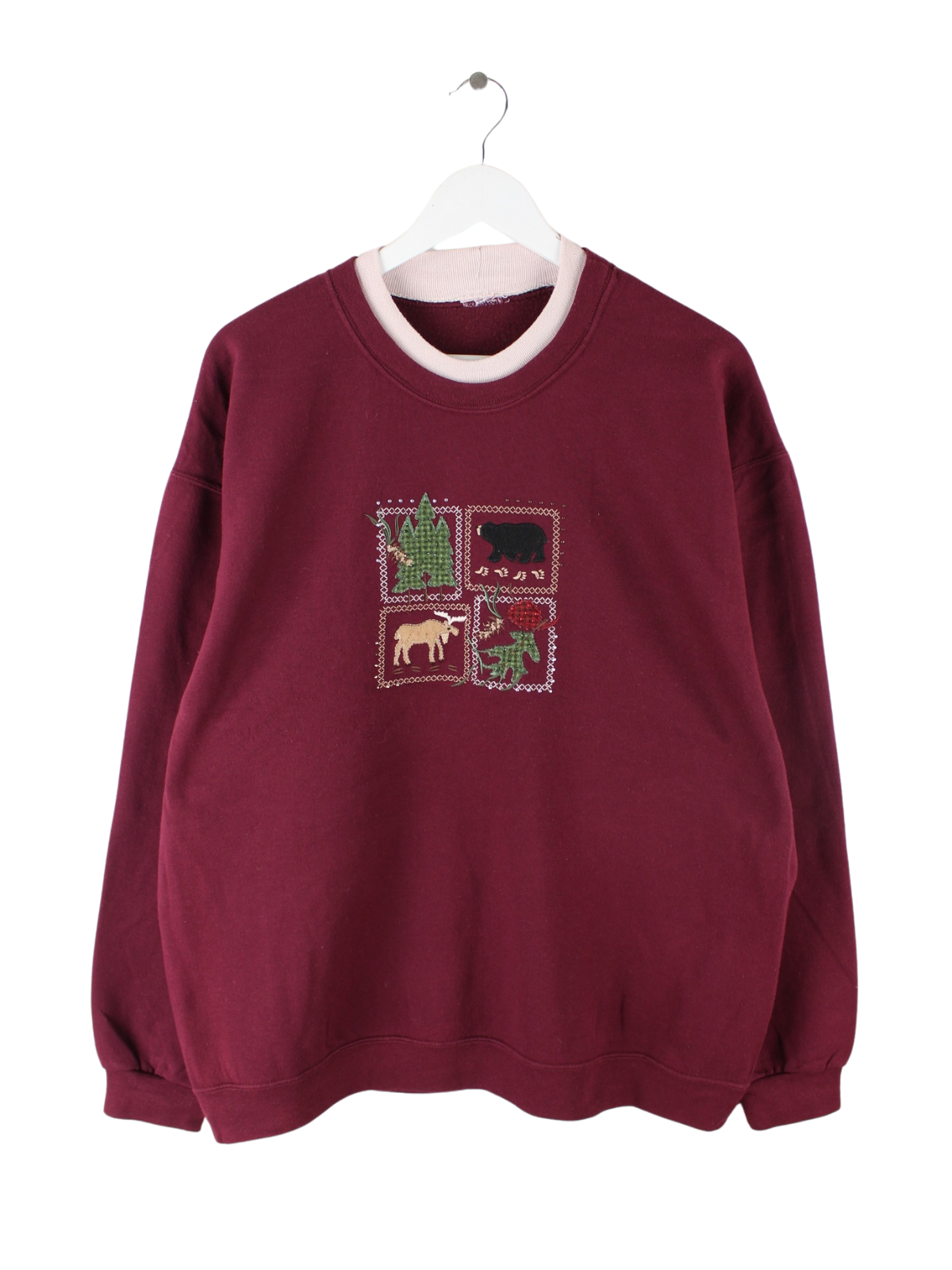 Vintage 90s Christmas Embroidered Sweater Rot XL