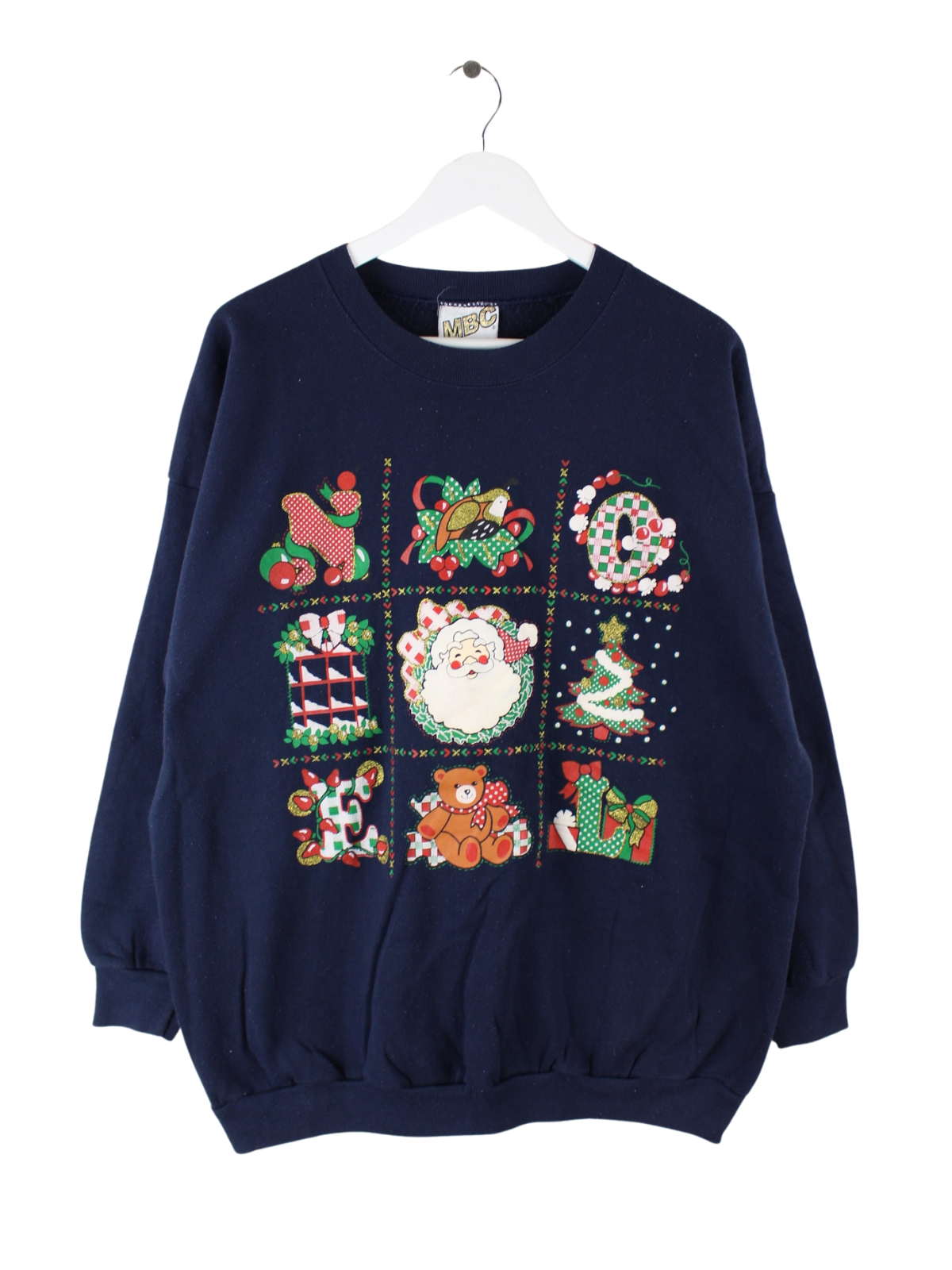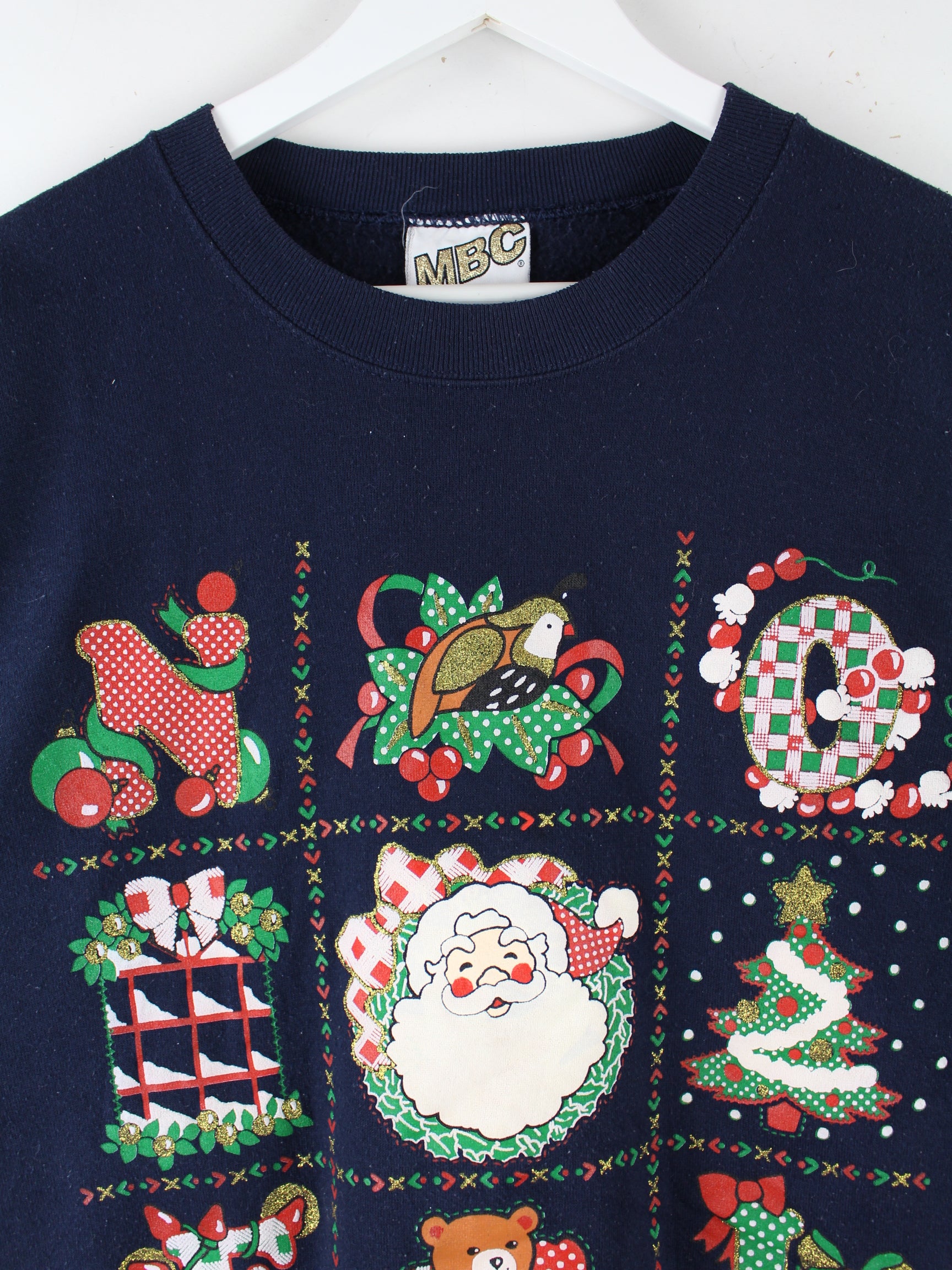 Vintage Sweater in Größe XXL aus den 90'ern. Er ist aus einer Baumwollmischung produziert und in Blau bei uns zu bekommen. Mit schönem Christmas Print.