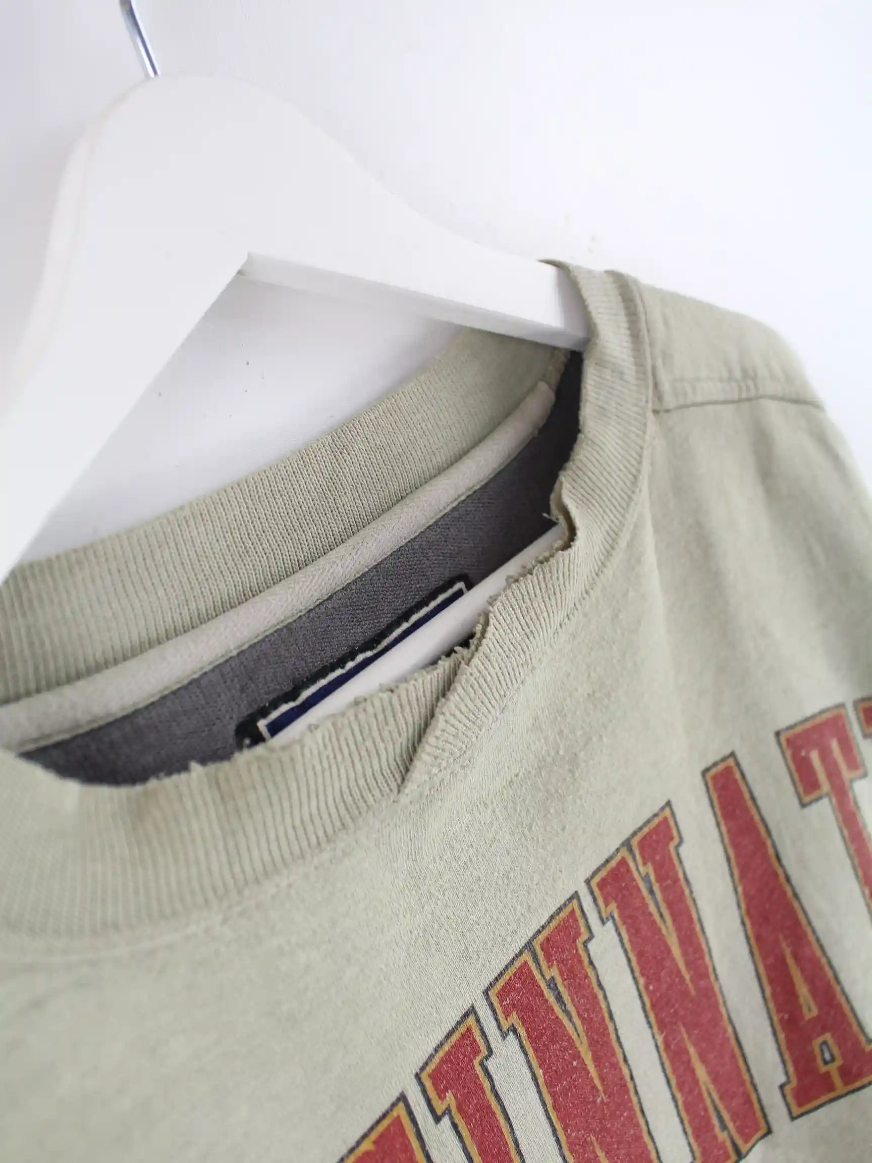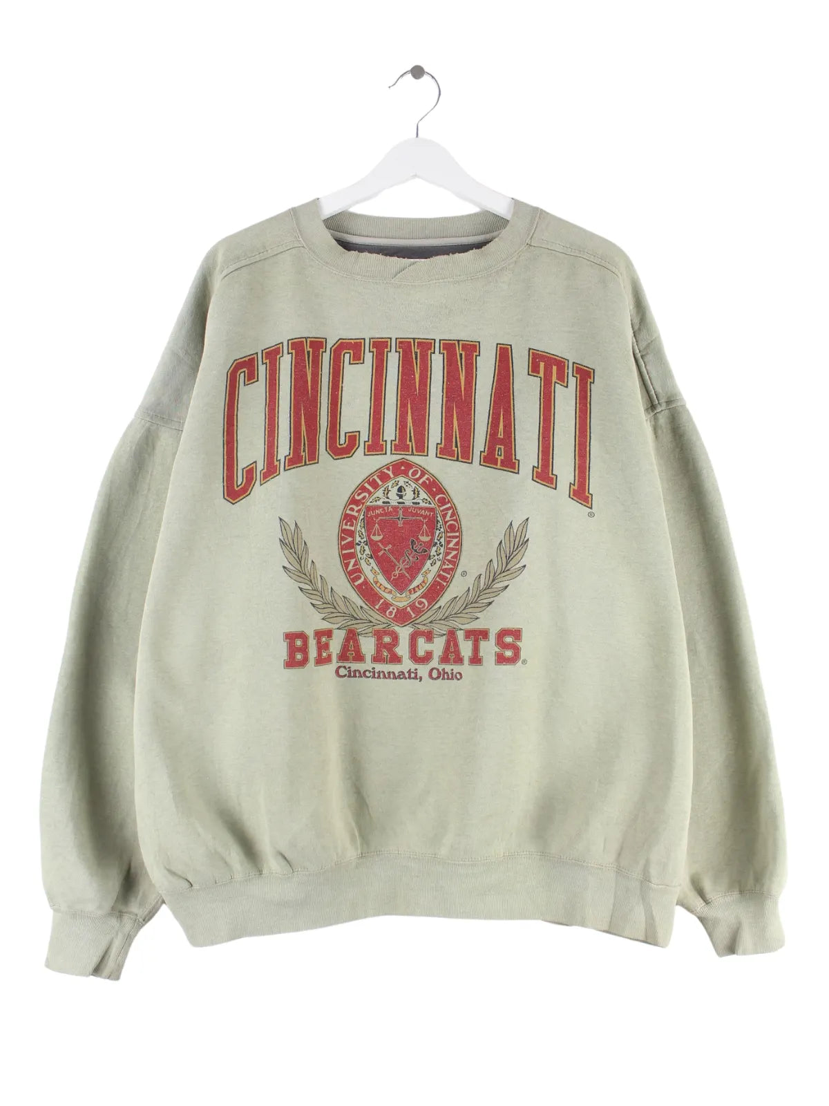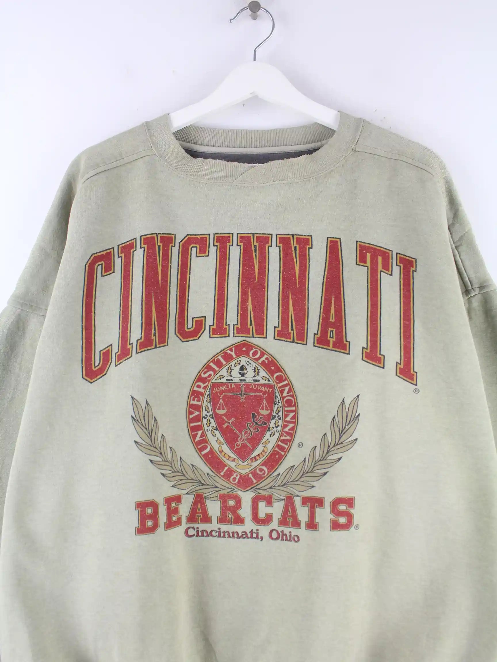 Grüner Vintage Sweater aus den 90'ern in Größe XL. Er ist aus einer Baumwollmischung angefertigt und in gutem Zustand zu haben. Mit seltenem Bearcats Print.