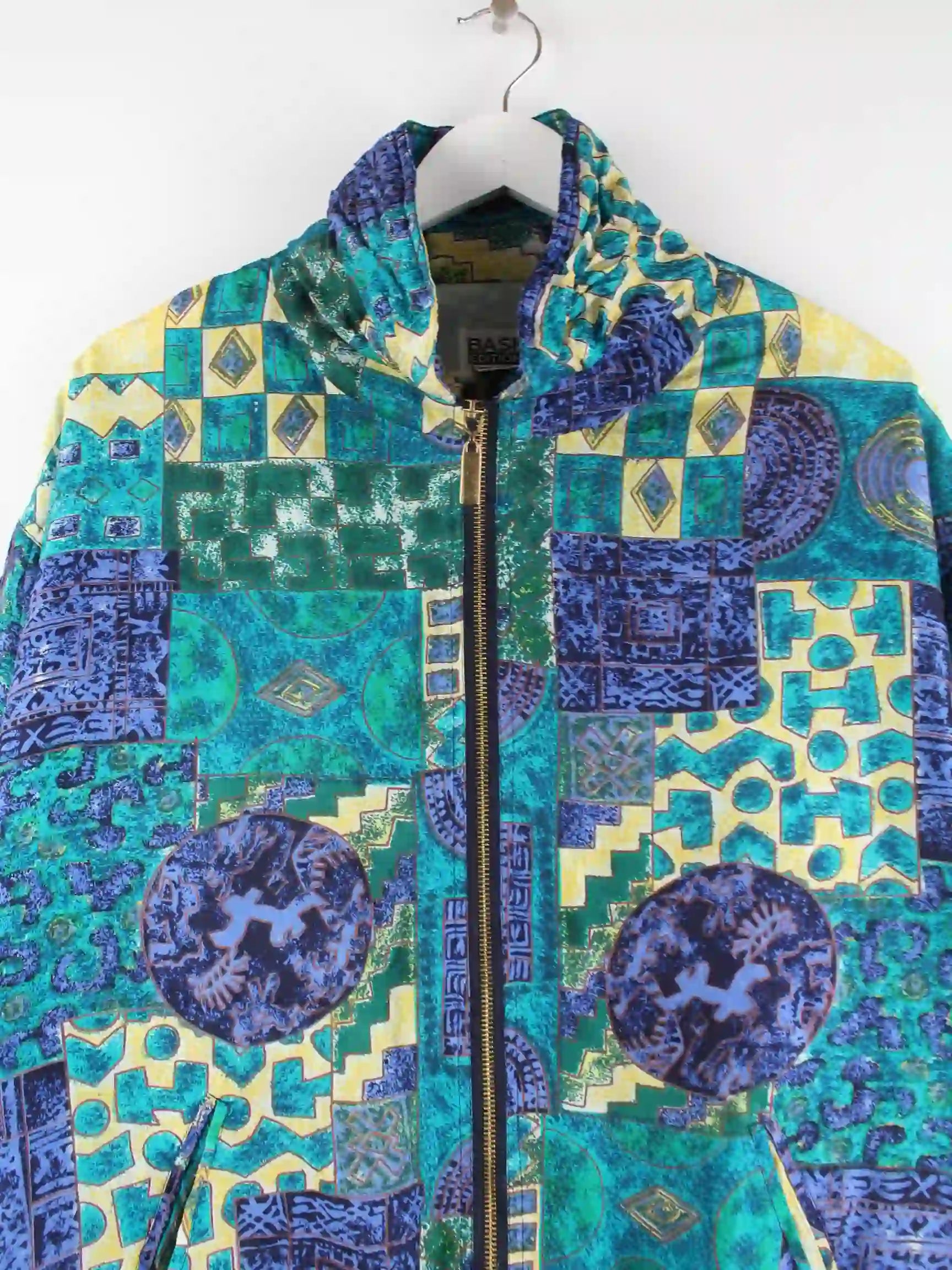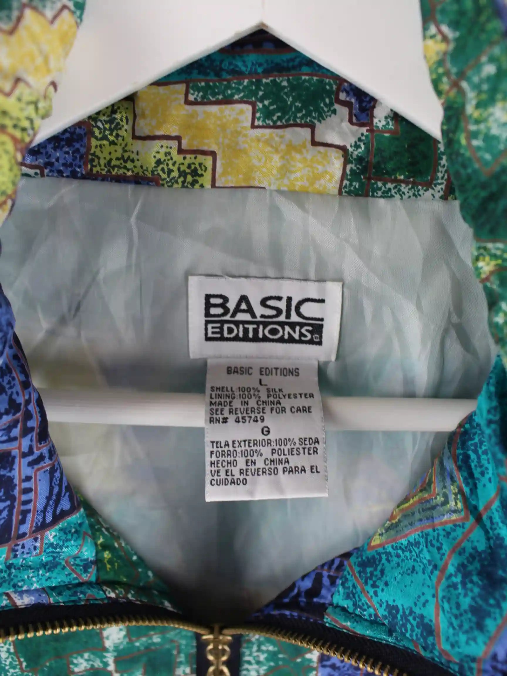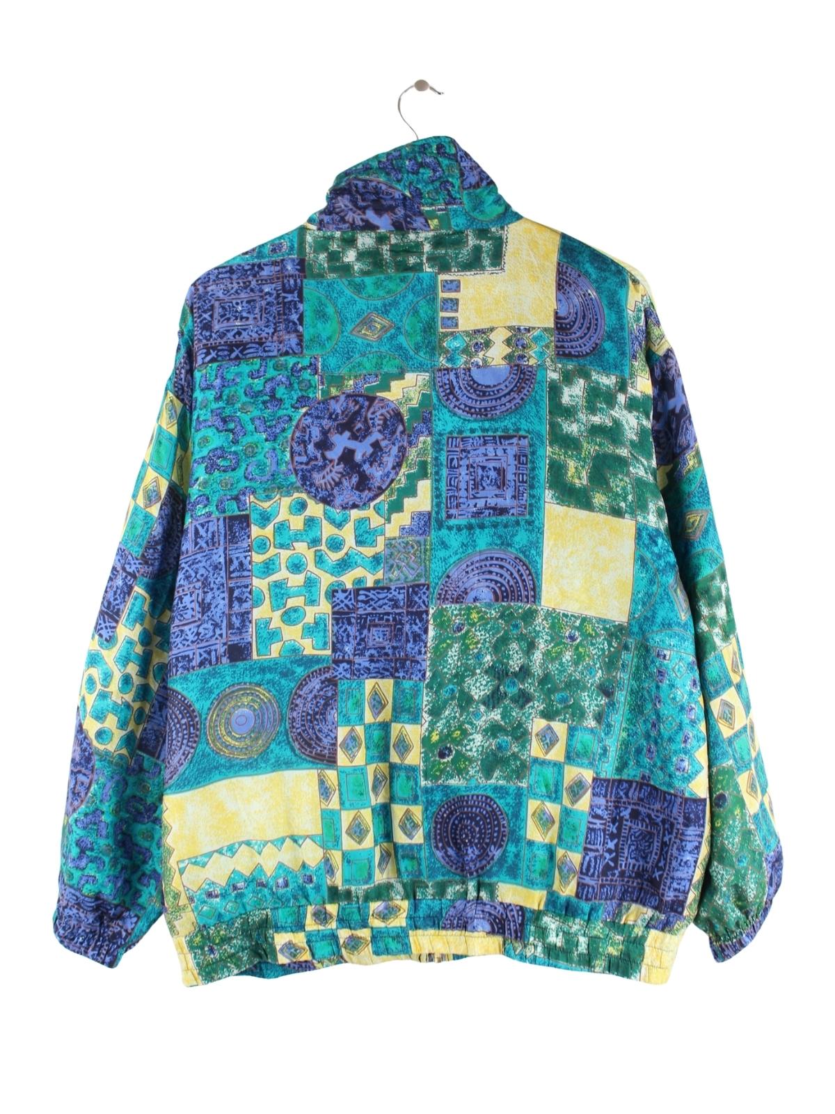 Vintage 90s Crazy Pattern 100% Seide Trainingsjacke Grün L