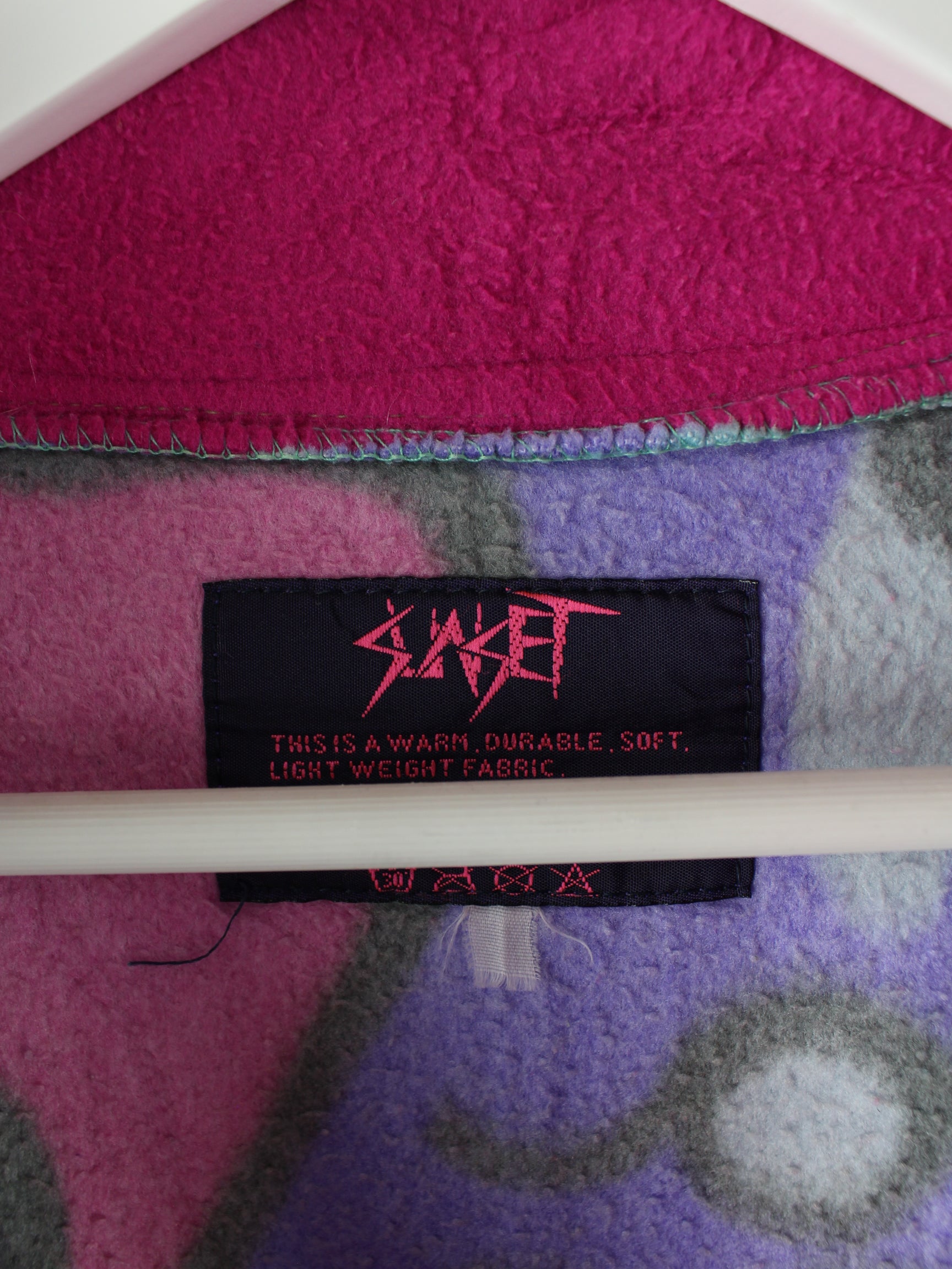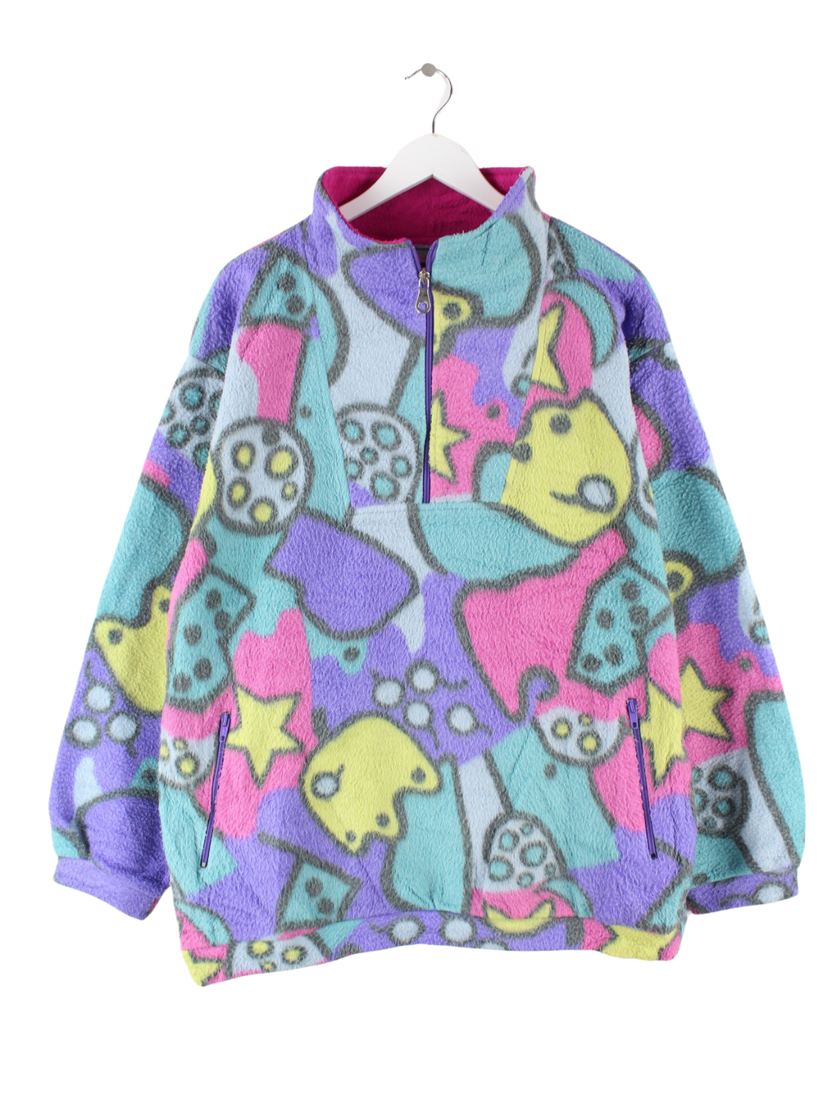 Vintage 90s Crazy Pattern Half Zip Fleece Sweater Mehrfarbig L