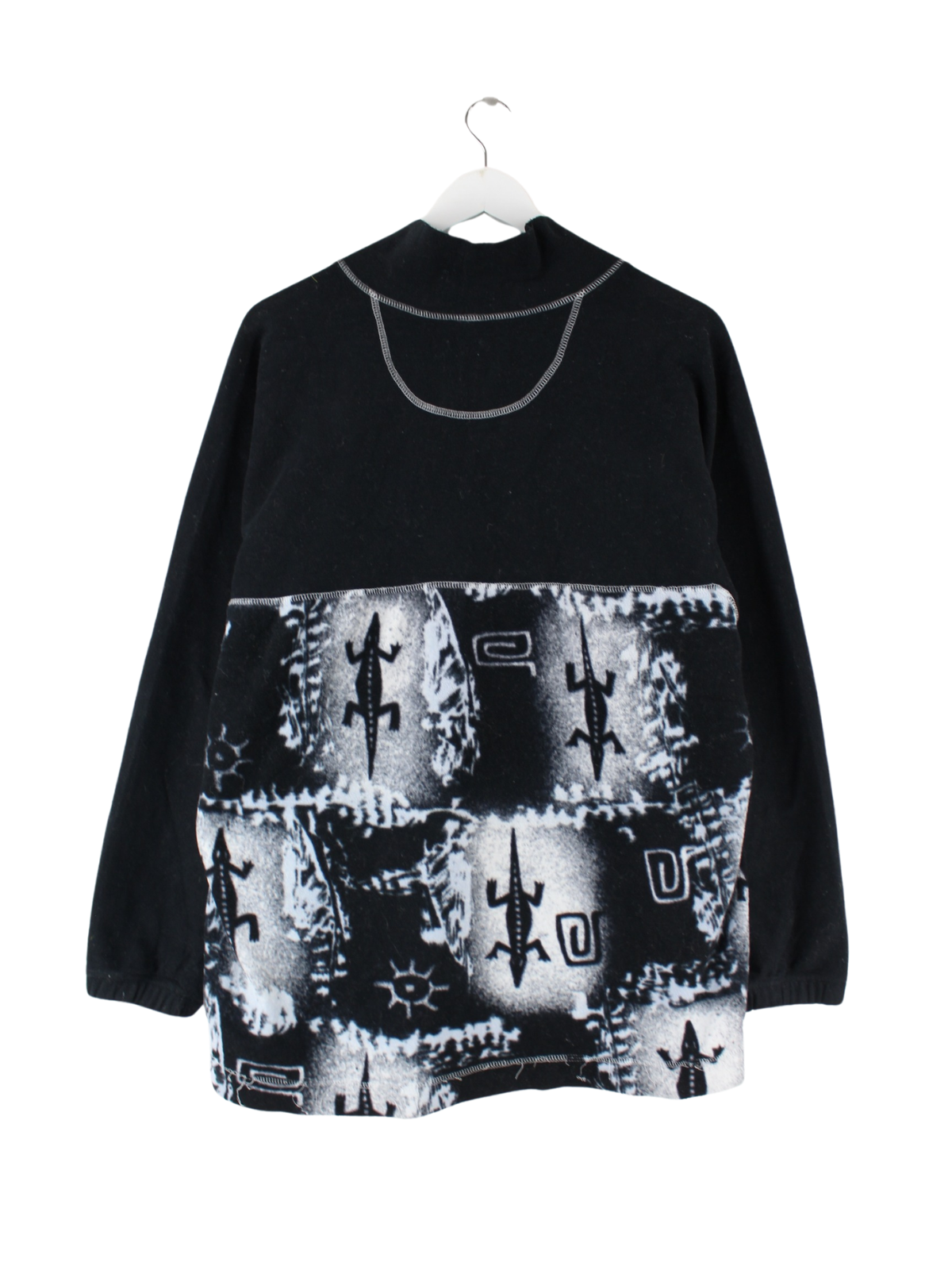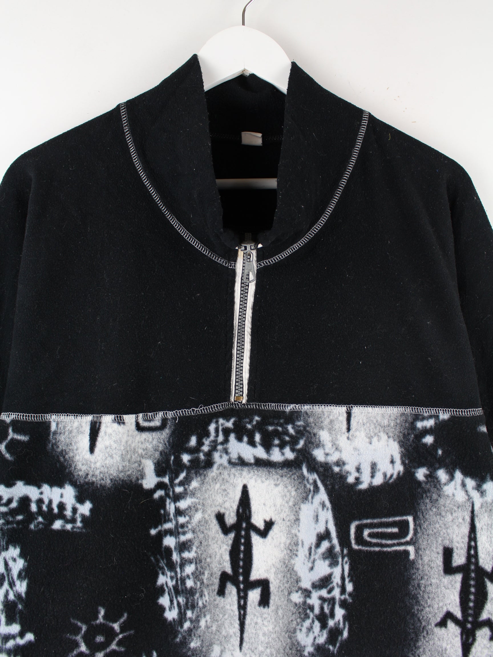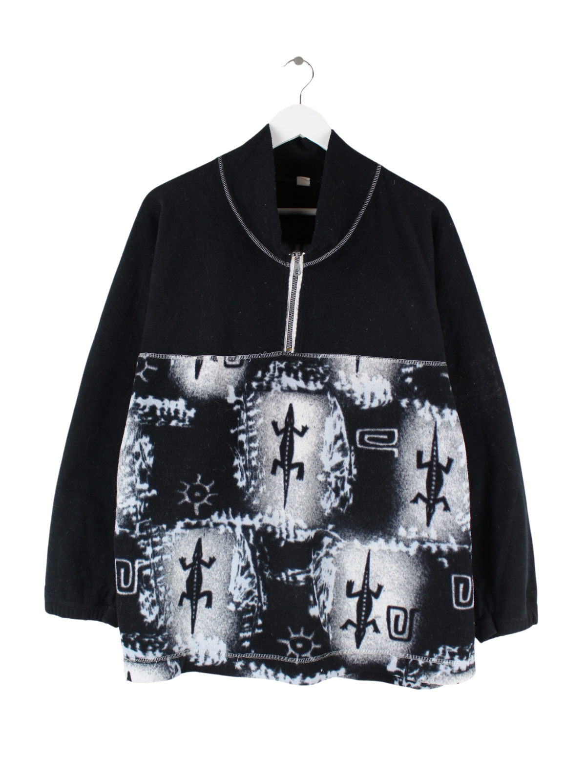 Vintage 90s Crazy Pattern Half Zip Sweater Schwarz M