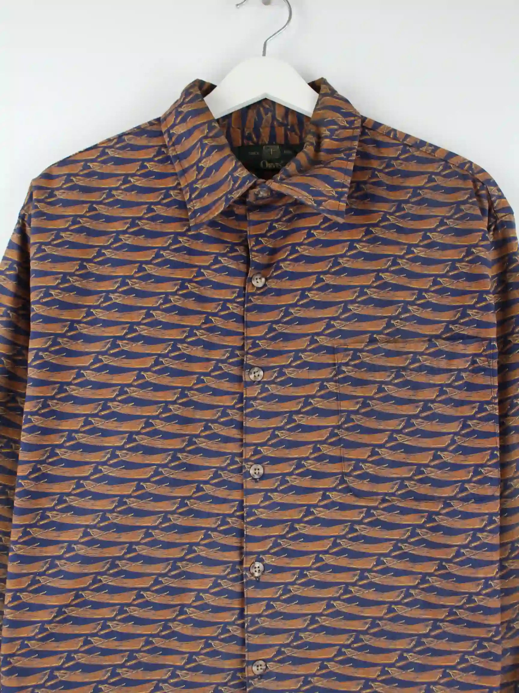 Braunes Vintage Freizeit Hemd aus den 90'ern in Größe L. Es ist aus Baumwolle und in sehr gutem Zustand zu haben.