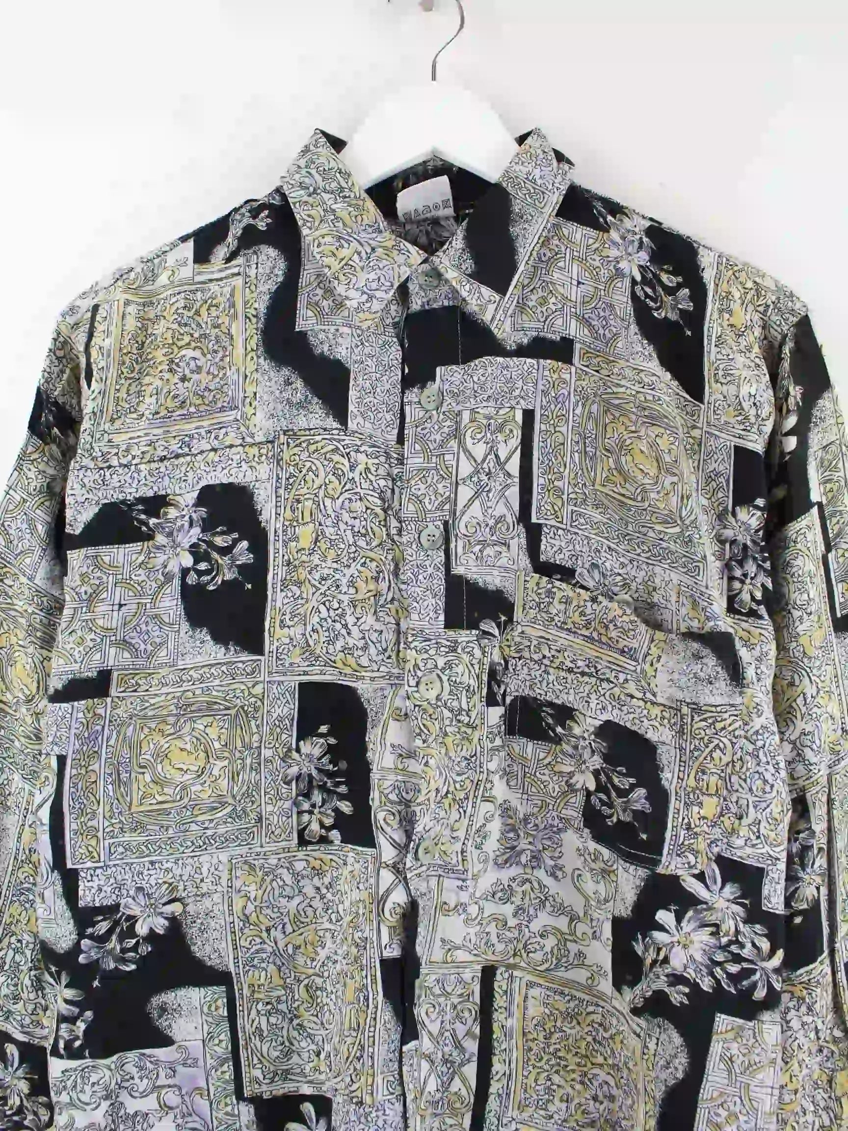 Vintage Freizeit Hemd in Größe M aus den 90'ern. Es ist aus Synthetik gefertigt und in Grau im Angebot.