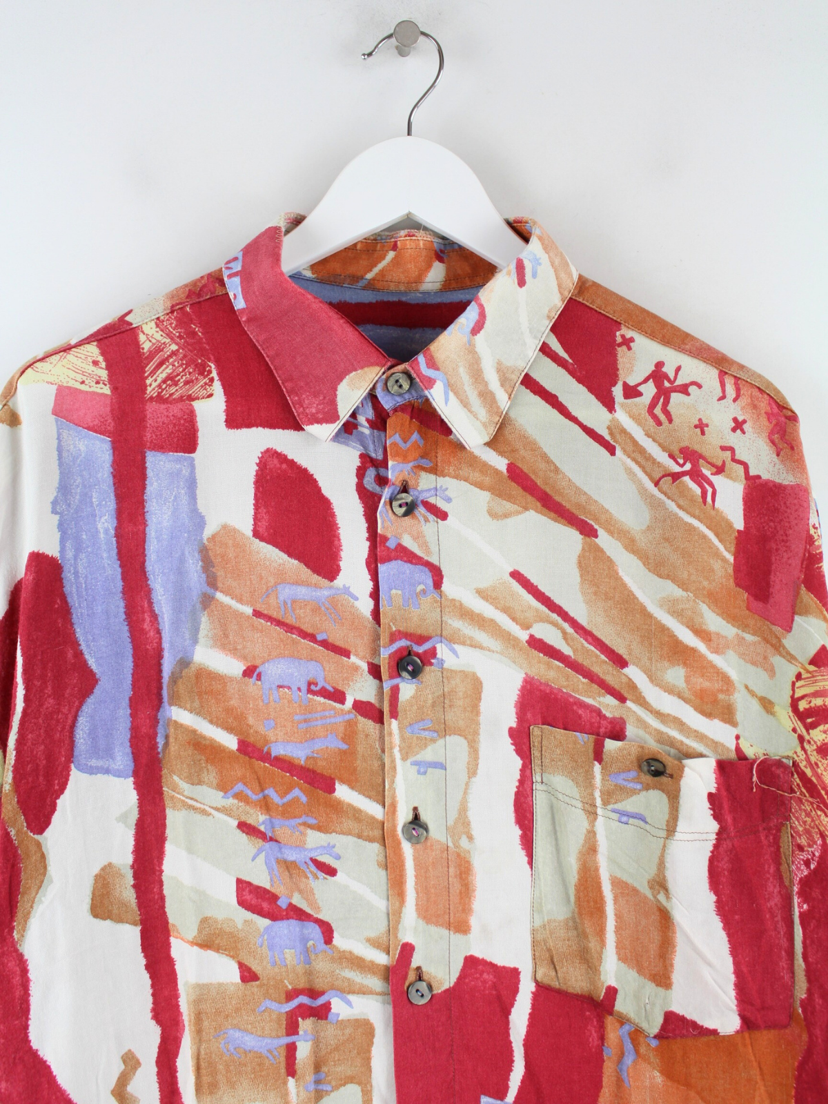 Vintage 90s Crazy Pattern Hemd Rot XL