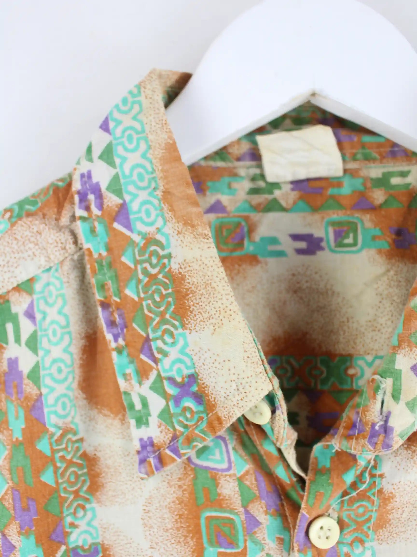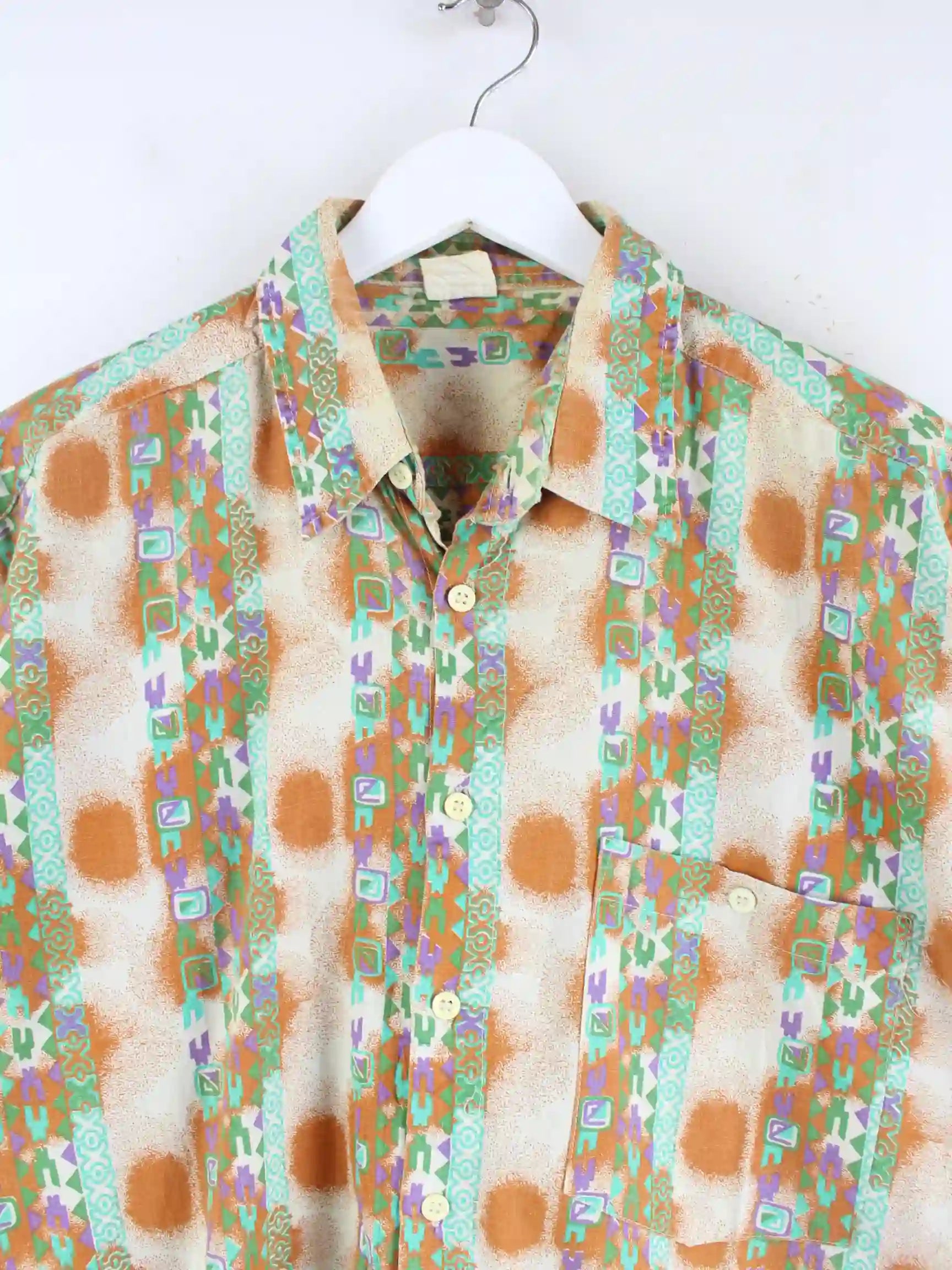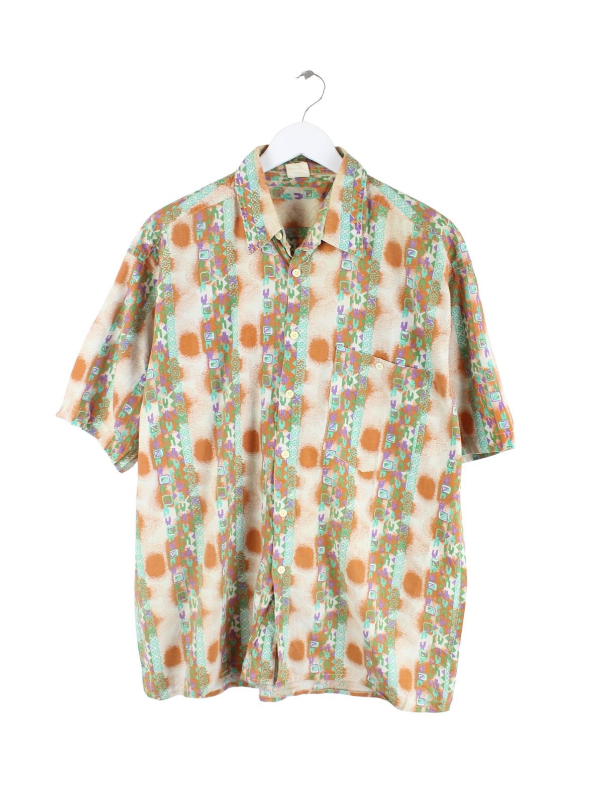 Vintage 90s Crazy Pattern Kurzarm Hemd Braun L