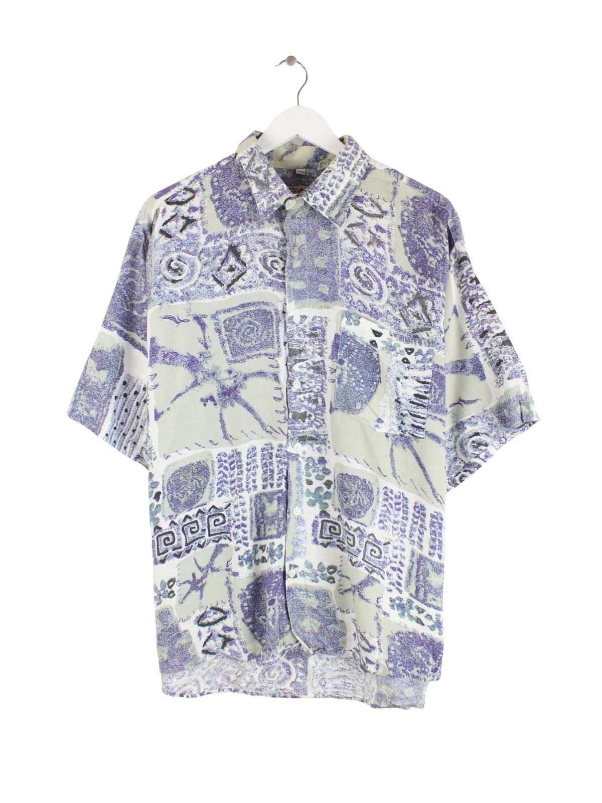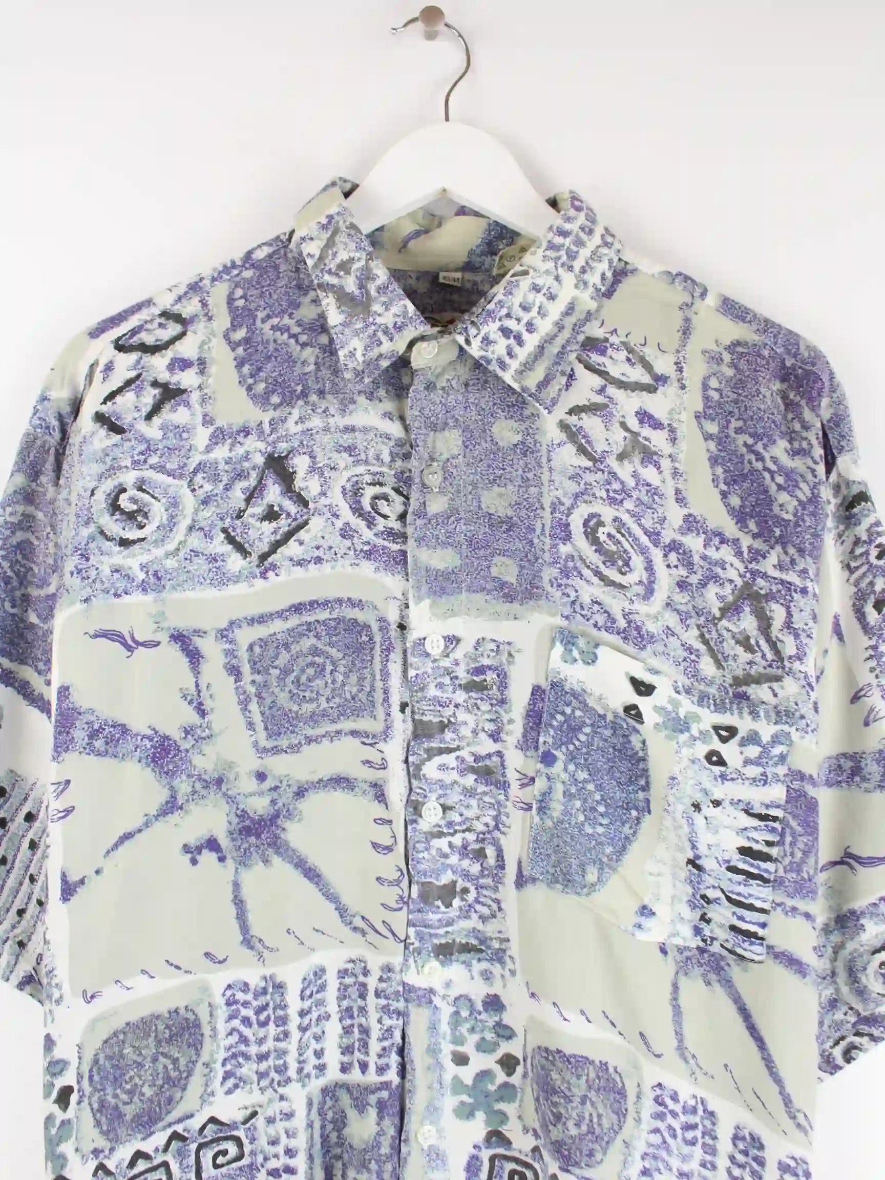 Vintage 90s Crazy Pattern Kurzarm Hemd Lila XL