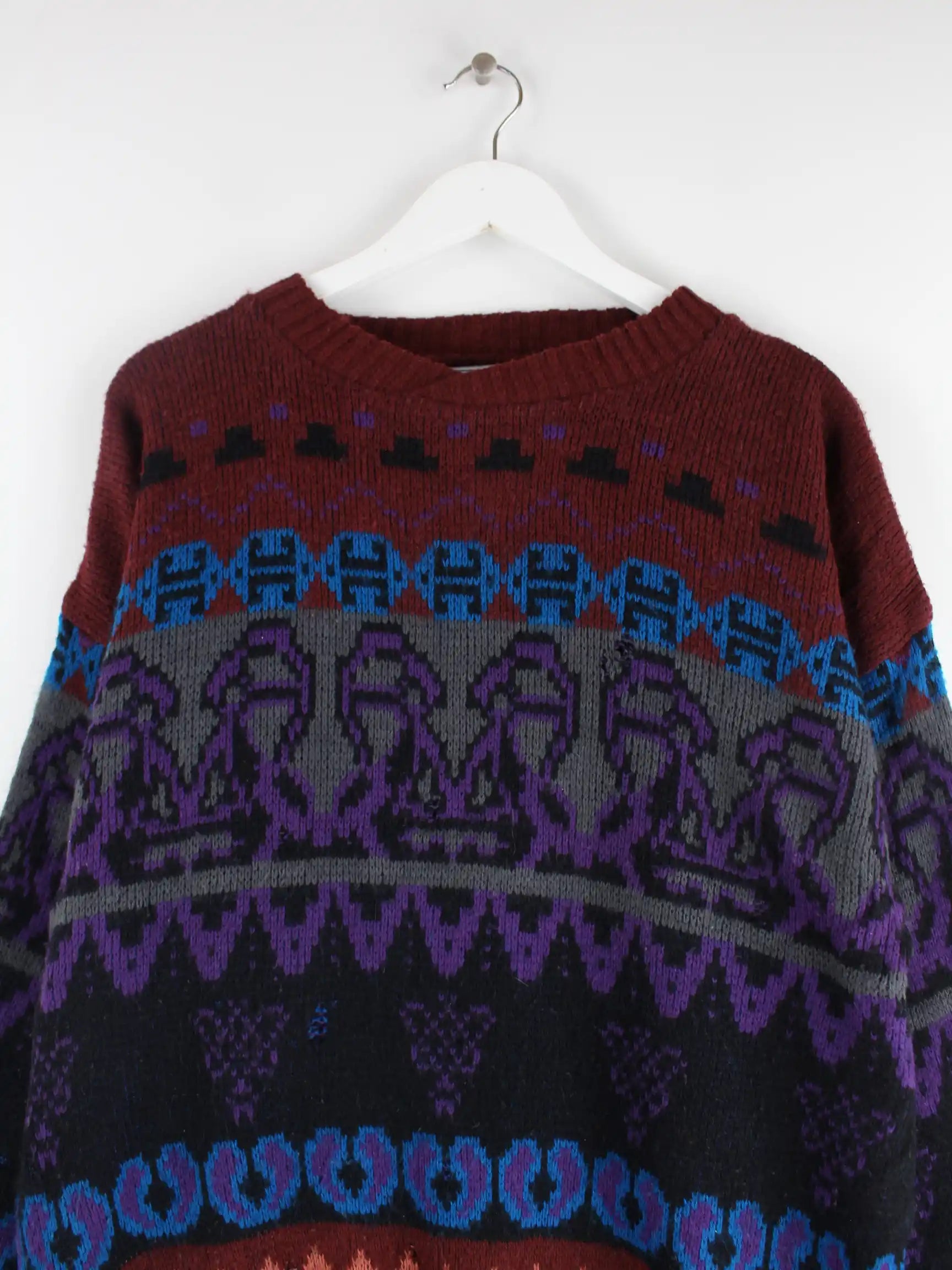 Vintage 90s Crazy Pattern Pullover Mehrfarbig XL