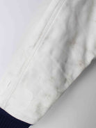 Vintage Jacke in Größe L aus den 90'ern. Sie ist aus Mischgewebe angefertigt und in Blau in Stock.