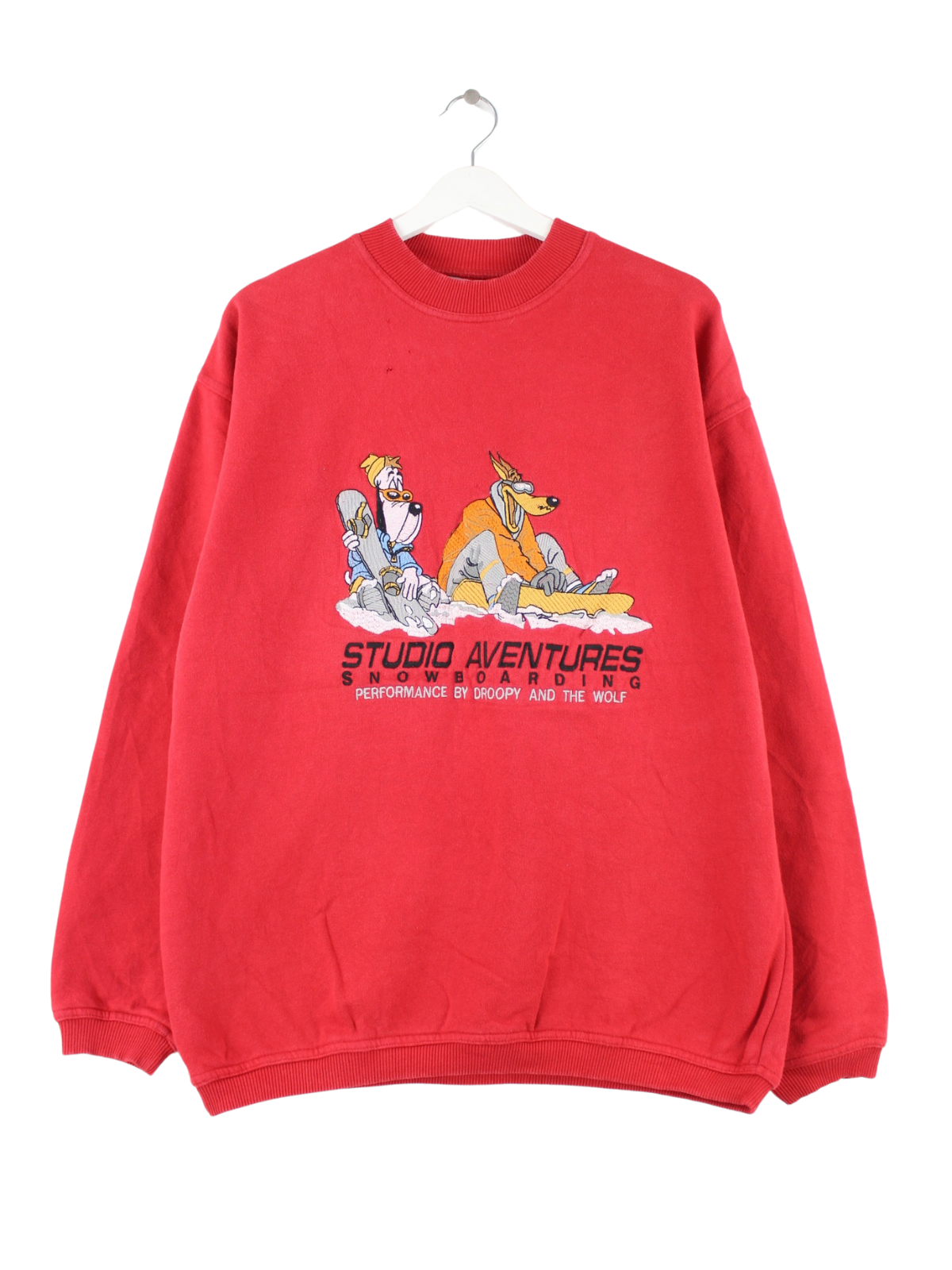 Vintage 90s Droopy Embroidered Sweater Rot L